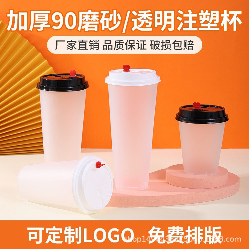 90口径使い捨てミルクカップ子光カップフロスト射出カップ500/700/1000/360ml蓋付き商用