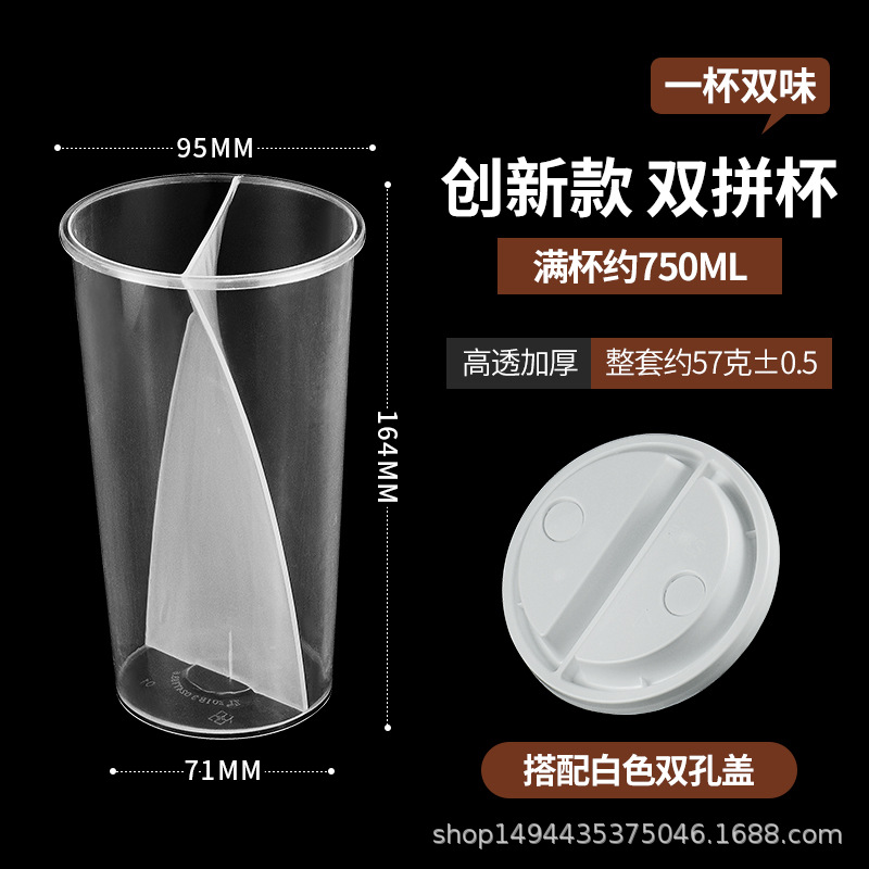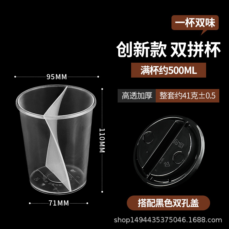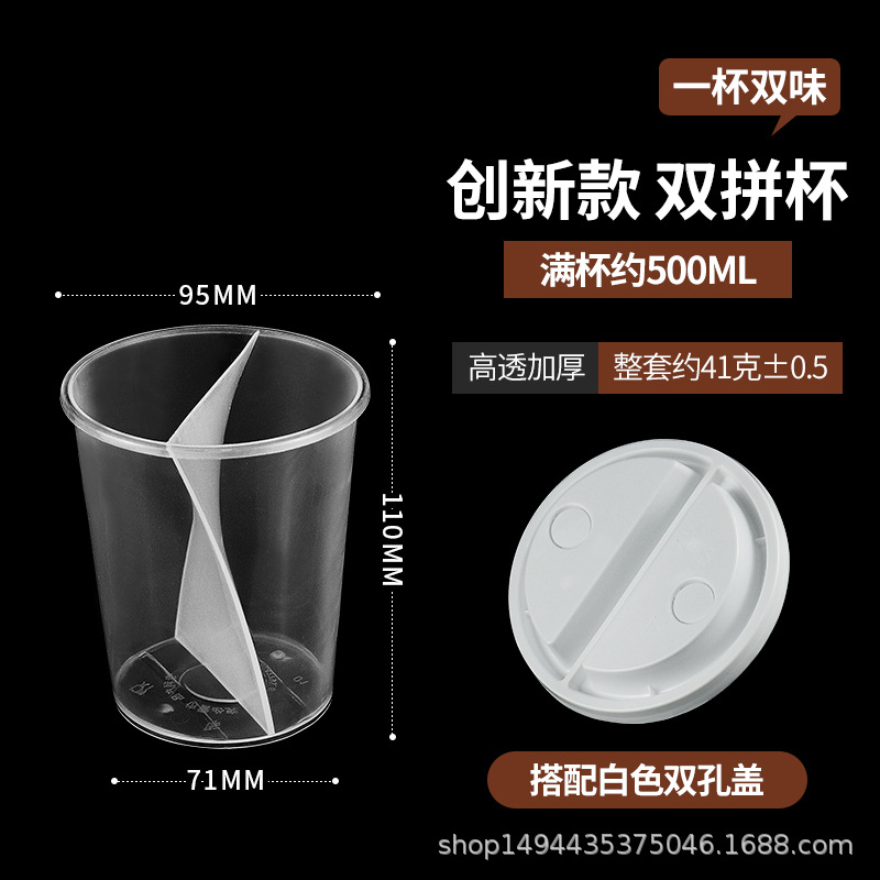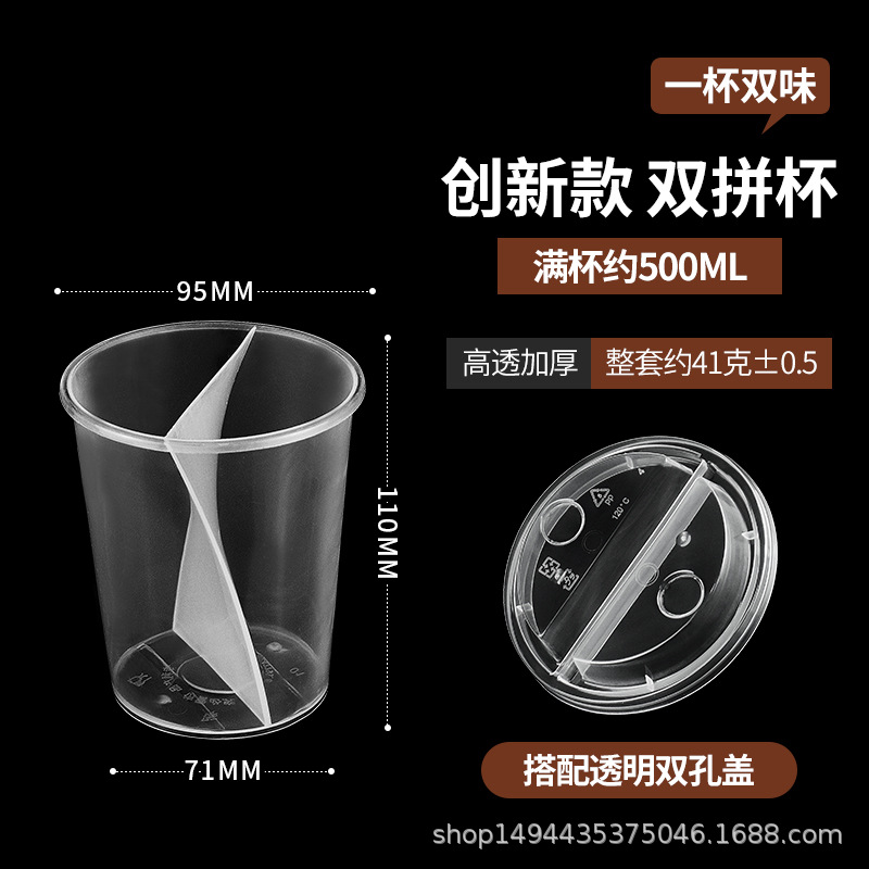 一次性奶茶杯双拼分享杯PP材质双享S型防漏盖奶茶咖啡外带鸳鸯杯