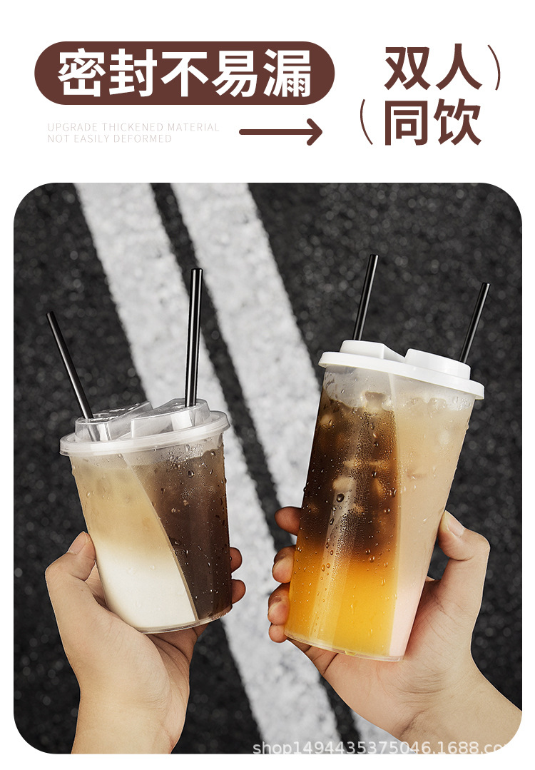 ネットセレブダブルエンジョイカップ、1カップ2ドリンク、カップルダブルカップ、厚みのあるダブルガンS、ユアンヤンカップ、プラスチックパッケージミルクティーカップ