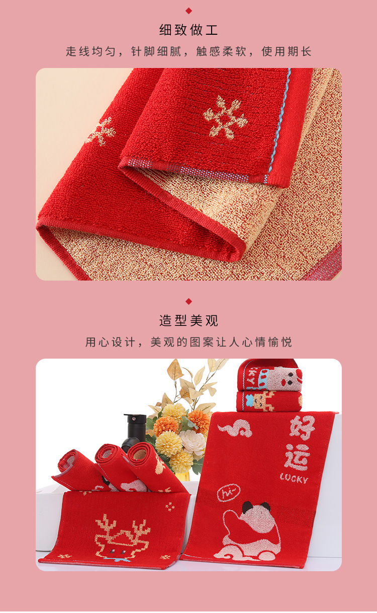 在庫あり 卸売 厚手の赤い綿タオル 吸水性のある正方形タオル カップル 結婚祝い 小さなタオル ロゴのカスタマイズ可能