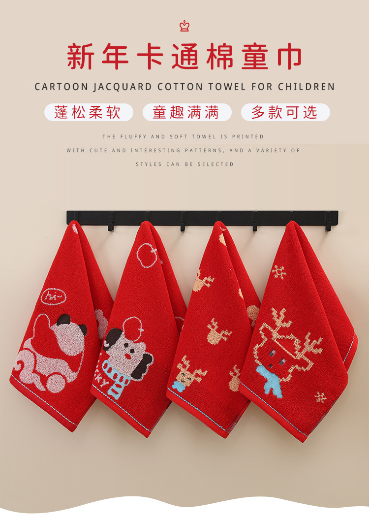 新年款极限股纱儿童毛巾卡通洗脸小毛巾柔软吸水幼儿园擦手巾代发
