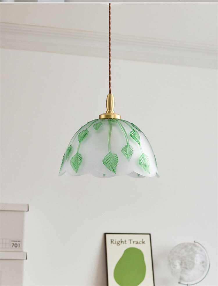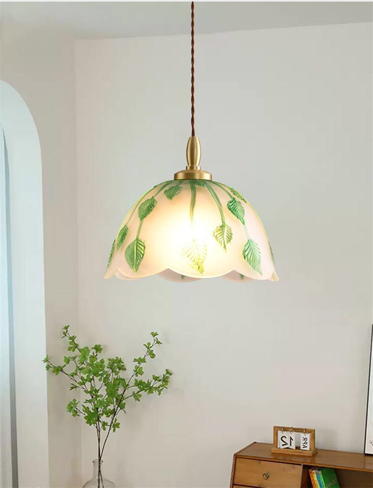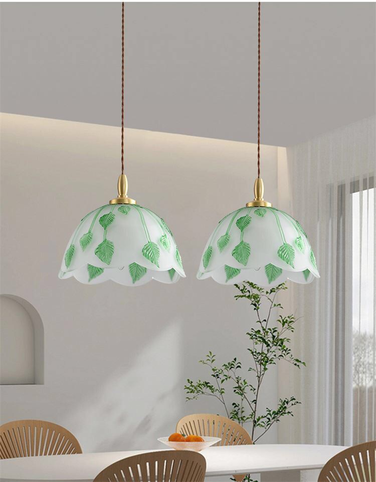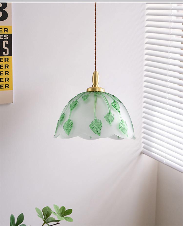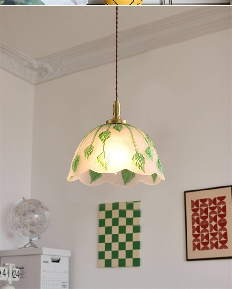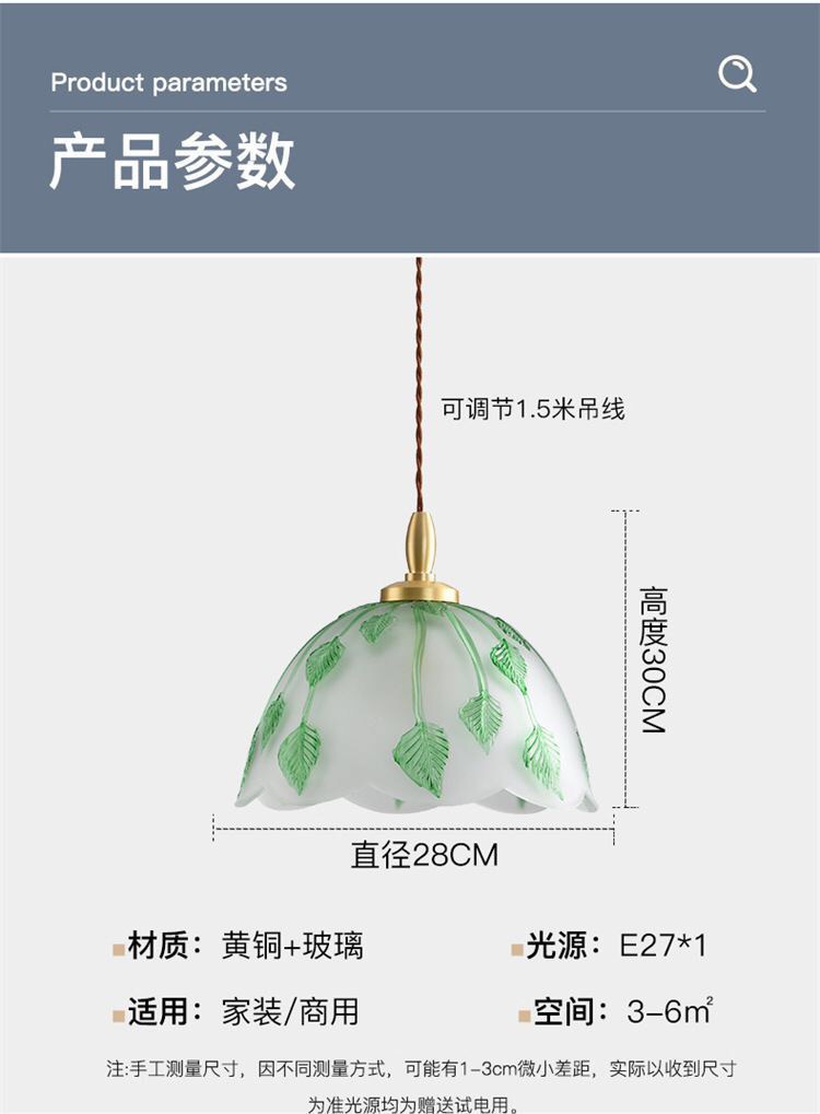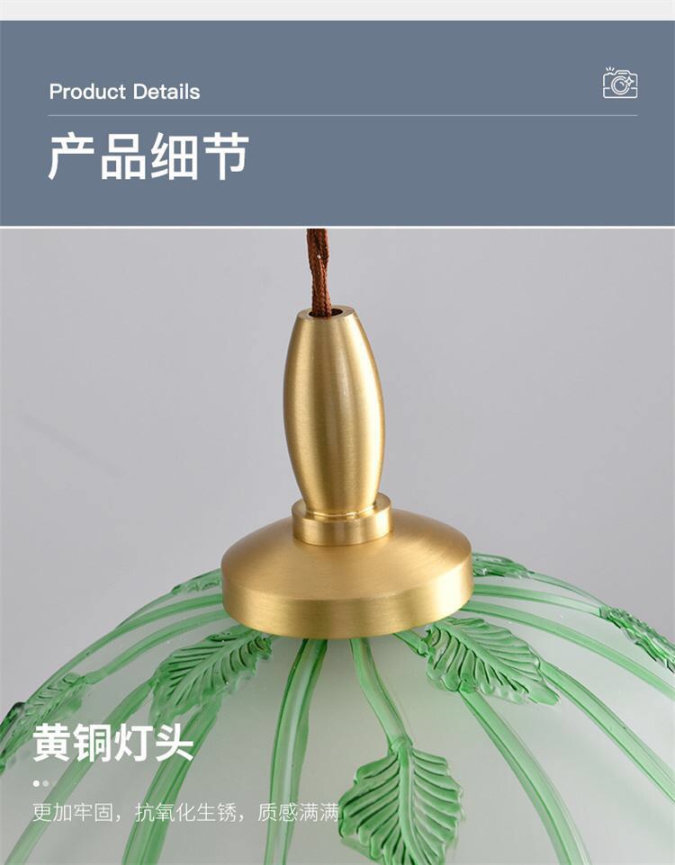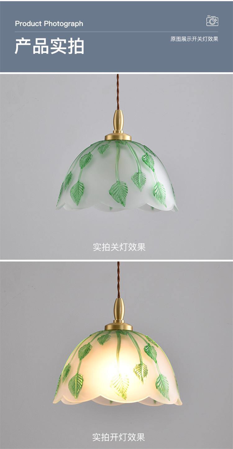 新款法式小清新绿叶餐厅吧台全铜吊灯美式复古卧室床头玻璃小吊灯