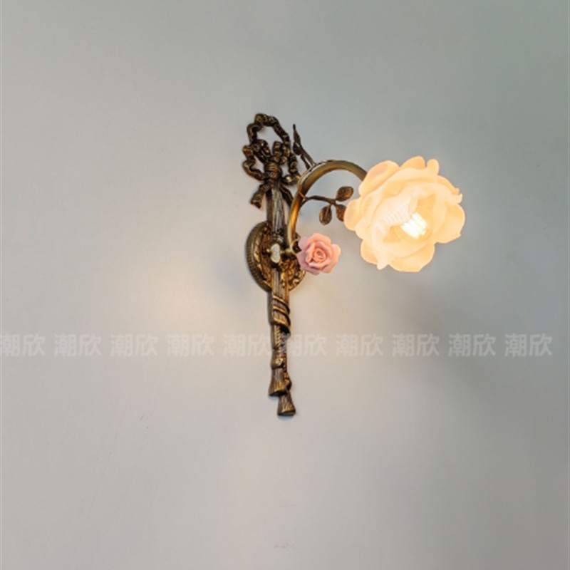 玫瑰花全铜壁灯法式中古轻奢高级氛围感美式复古卧室床头装饰壁灯