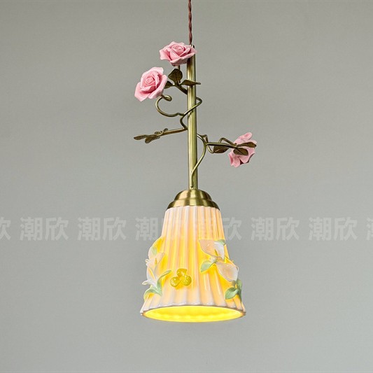 法式田园床头灯中古书房玄关玫瑰花朵创意玻璃氛围灯复古餐厅吊灯