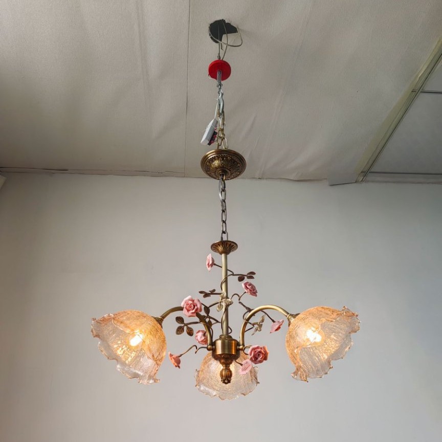 法式复古客厅灯玫瑰花玻璃吊灯高级感中古风全铜卧室书房餐厅吊灯