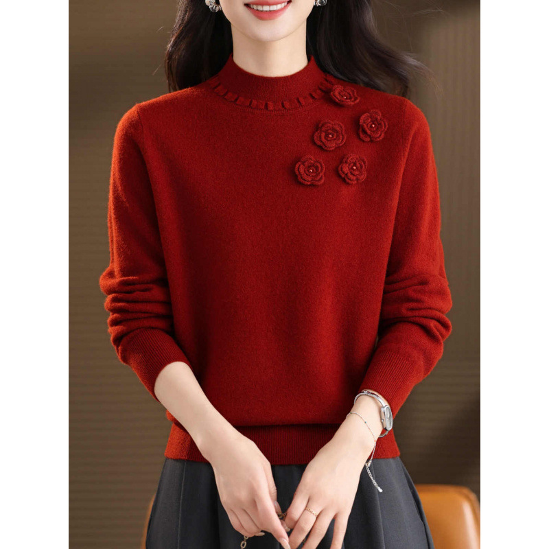 本命年红色半高领加厚洋绒毛衣女2025秋冬新款宽松洋气针织打底衫