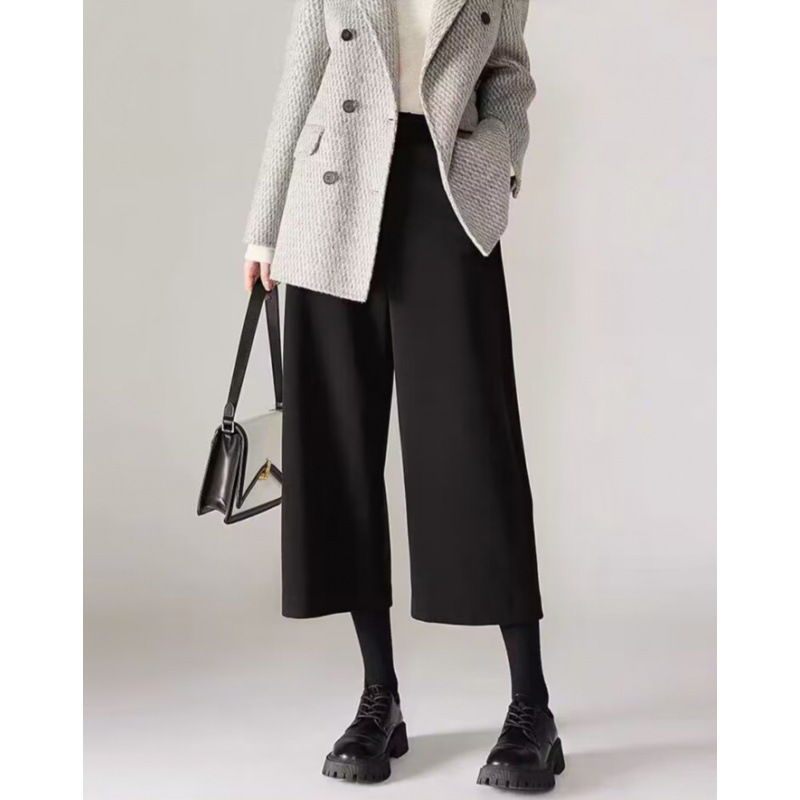 25冬暖かい8分丈ワイドレッグパンツ七豪米六号铺新作おしゃれゴムウエスト裏起毛カジュアルパンツ女性用
