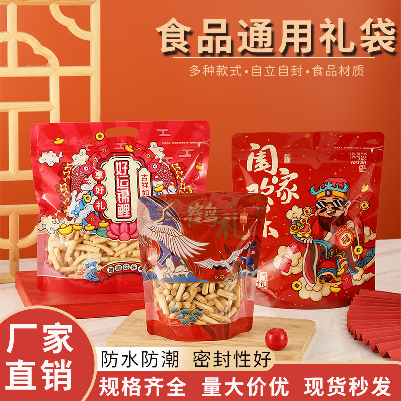 年货袋手提礼品包装袋干果零食糖果密封袋喜庆袋休闲食品自封袋