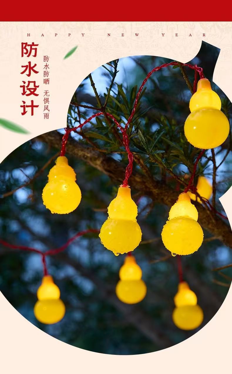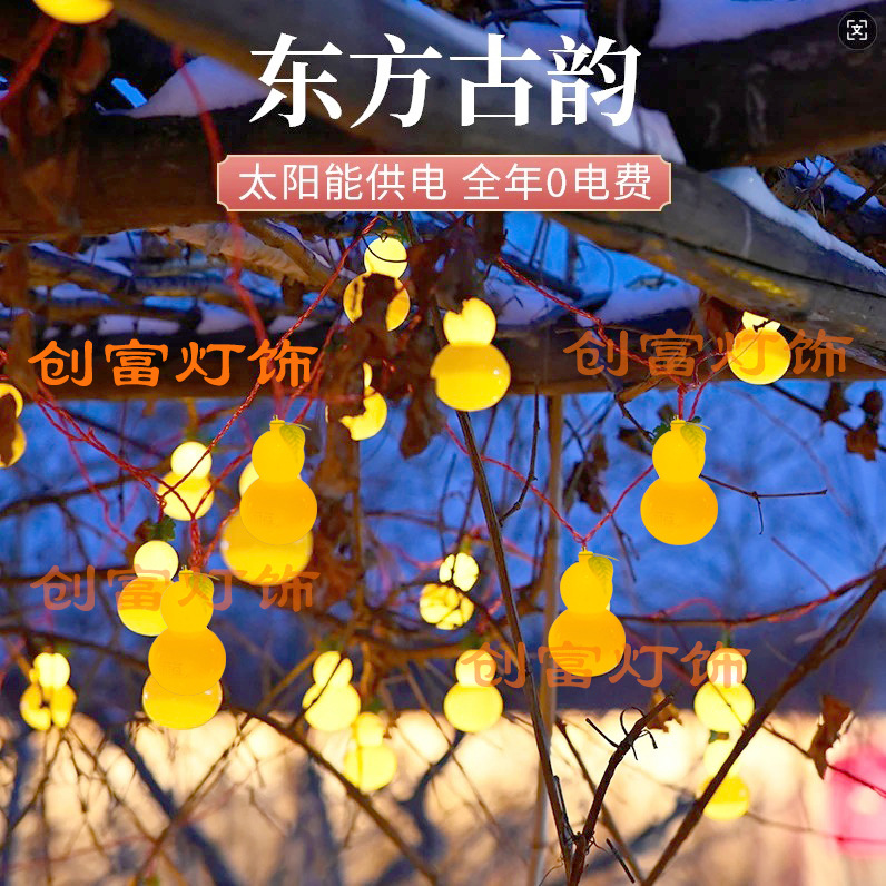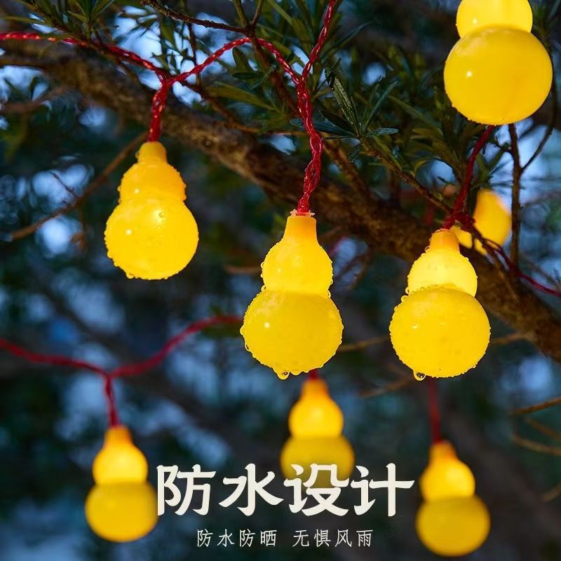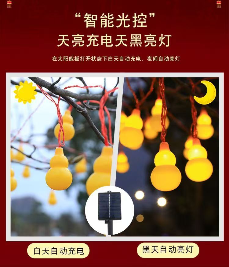 新年太阳能葫芦灯串过年彩灯庭院阳台户外防水氛围灯春节彩灯串灯