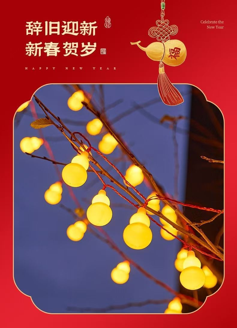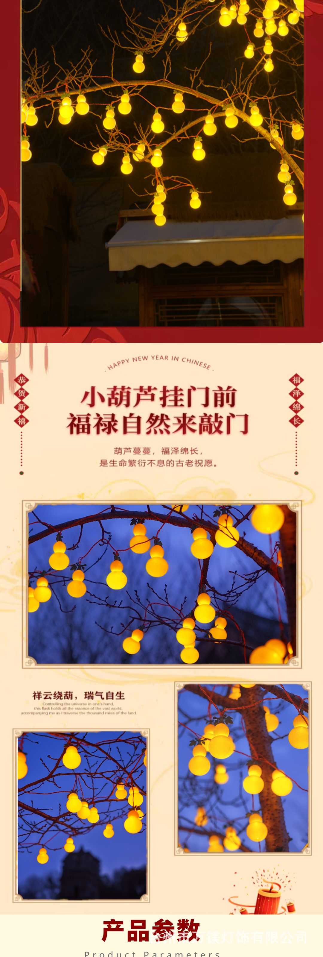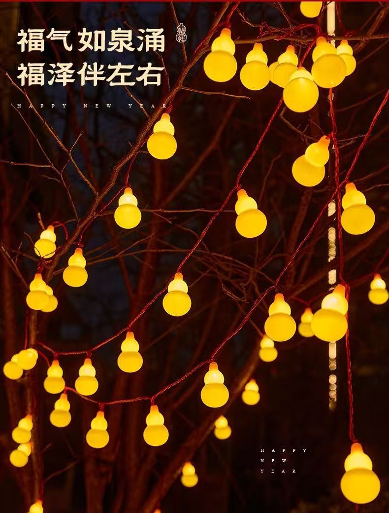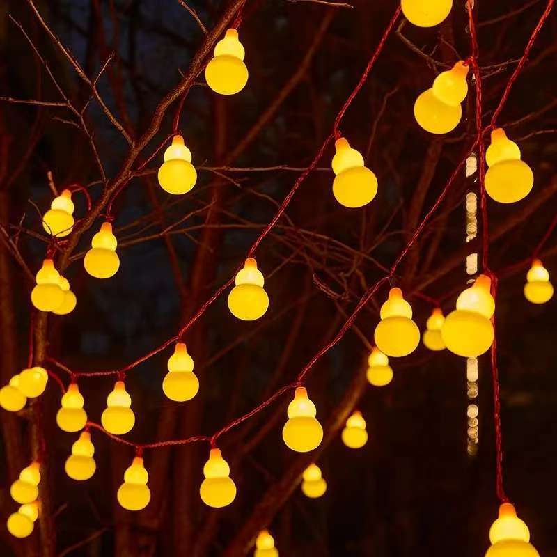 新年太阳能葫芦灯串过年彩灯庭院阳台户外防水氛围灯春节彩灯串灯
