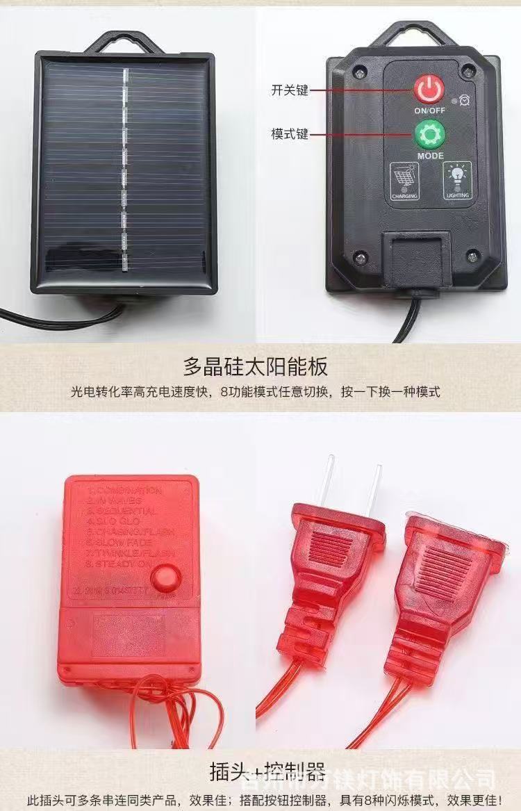 颜色 【透明线】2米10灯--电池盒款常亮,【透明线】3米20灯--电池盒款带闪,【高亮红线】5米18灯--插电款,【高亮红线】10米36灯--插电款,【高亮红线】5米18灯--太阳能遥控款八模式+USB充电,【高亮红线】10米36灯--太阳能遥控款八模式+USB充电,【高亮黑线】5米20灯--插电款,【高亮黑线】10米40灯--插电款,【高亮黑线】5米20灯--太阳能遥控款八模式+USB充电,【高亮黑线】10米40灯--太阳能遥控款八模式+USB充电