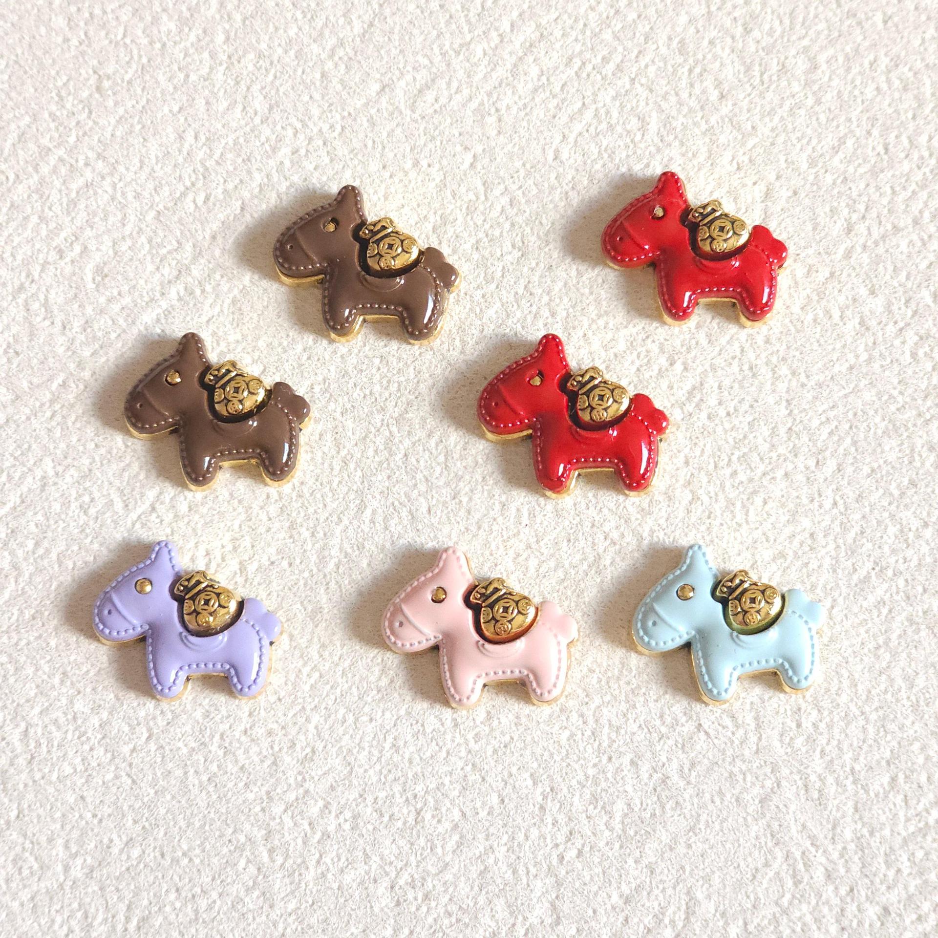 新款小众撞色可爱镶钻摇摇马头饰边夹手机壳合金贴片diy饰品配件