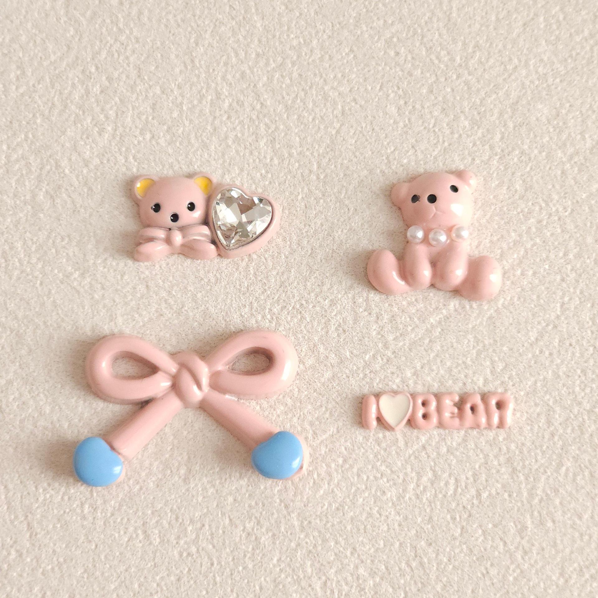 早春奶油风合金小熊蝴蝶结头饰掰掰夹耳饰手机壳贴片diy饰品配件