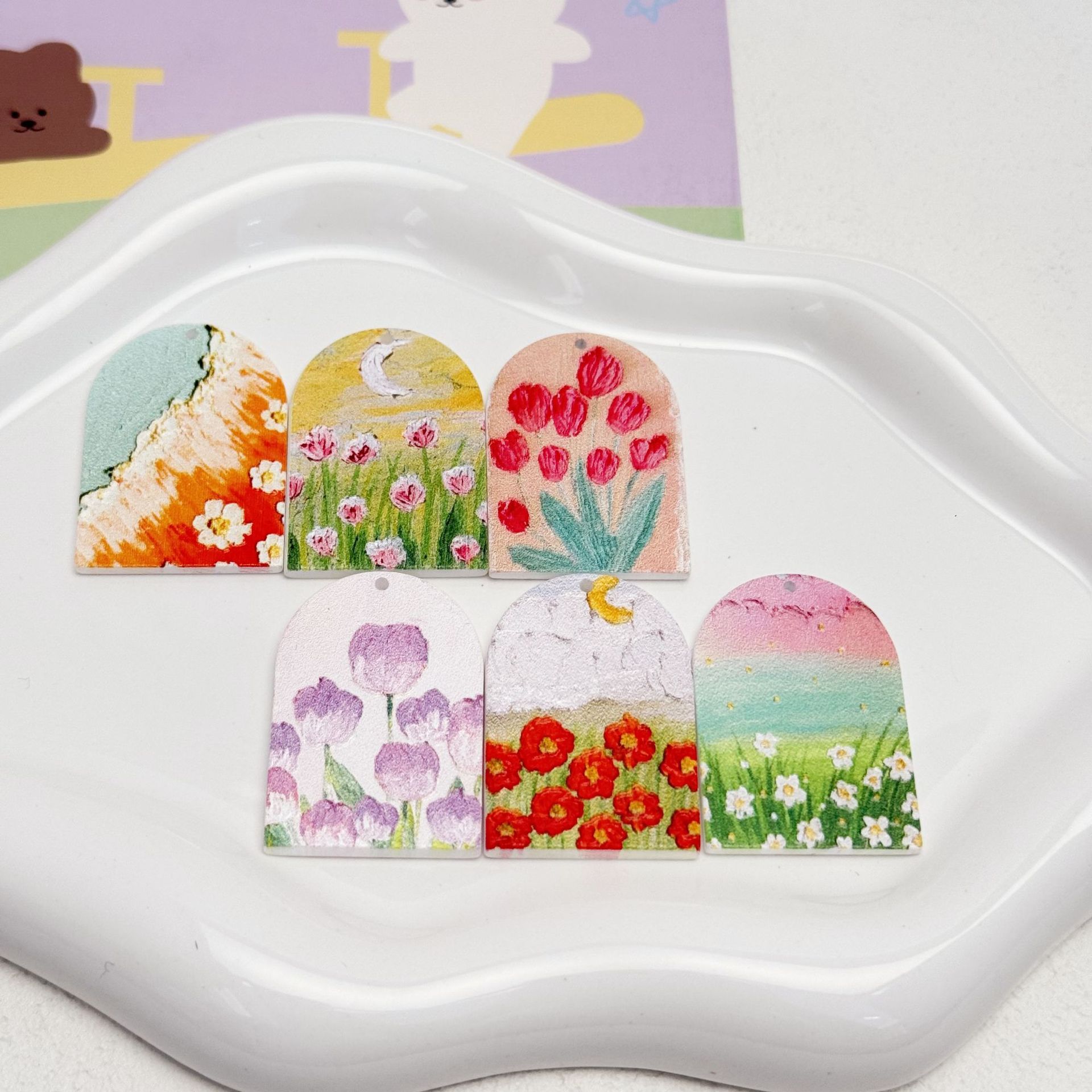 手描きイン油絵レリーフチューリップの花キーホルダー冷蔵庫マグネットイヤリングペンダント diy ジュエリーアクセサリー