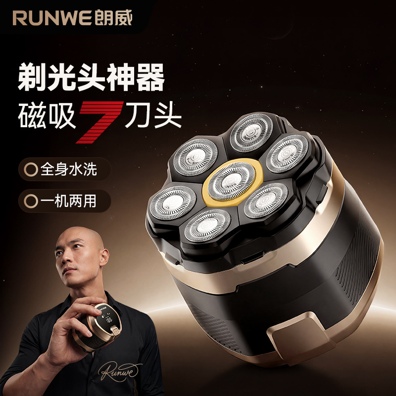 朗威电动磁吸剃须刀七刀头剃须剃光头神器充电男士剃须刀Rs2026