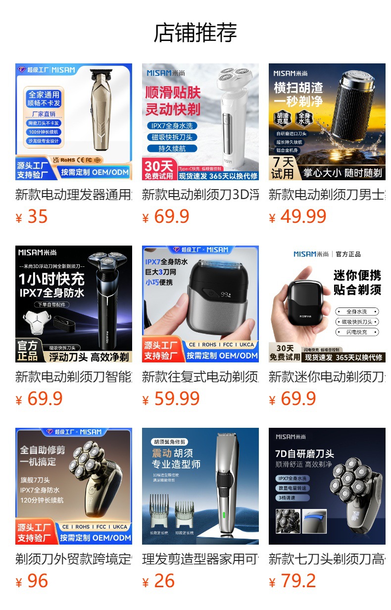 产品类别 电动剃须刀