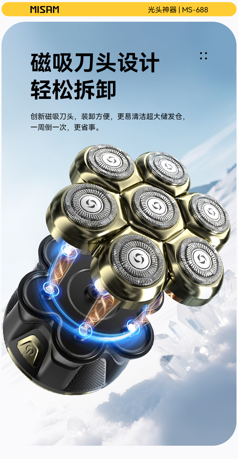 新款光头神器德国精钢七刀头剃光头专用剃头理发器电动磁吸剃须刀