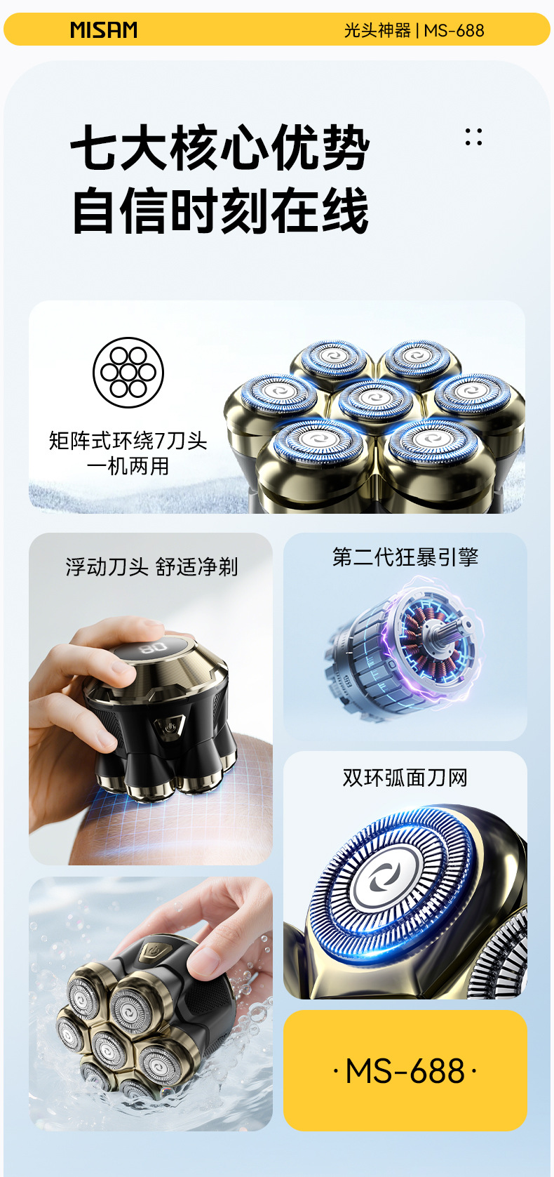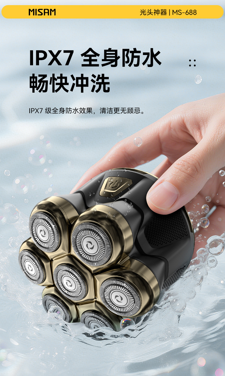男士自助剃光头神器理发专用磁吸7刀头水洗数显快充电动剃须刀