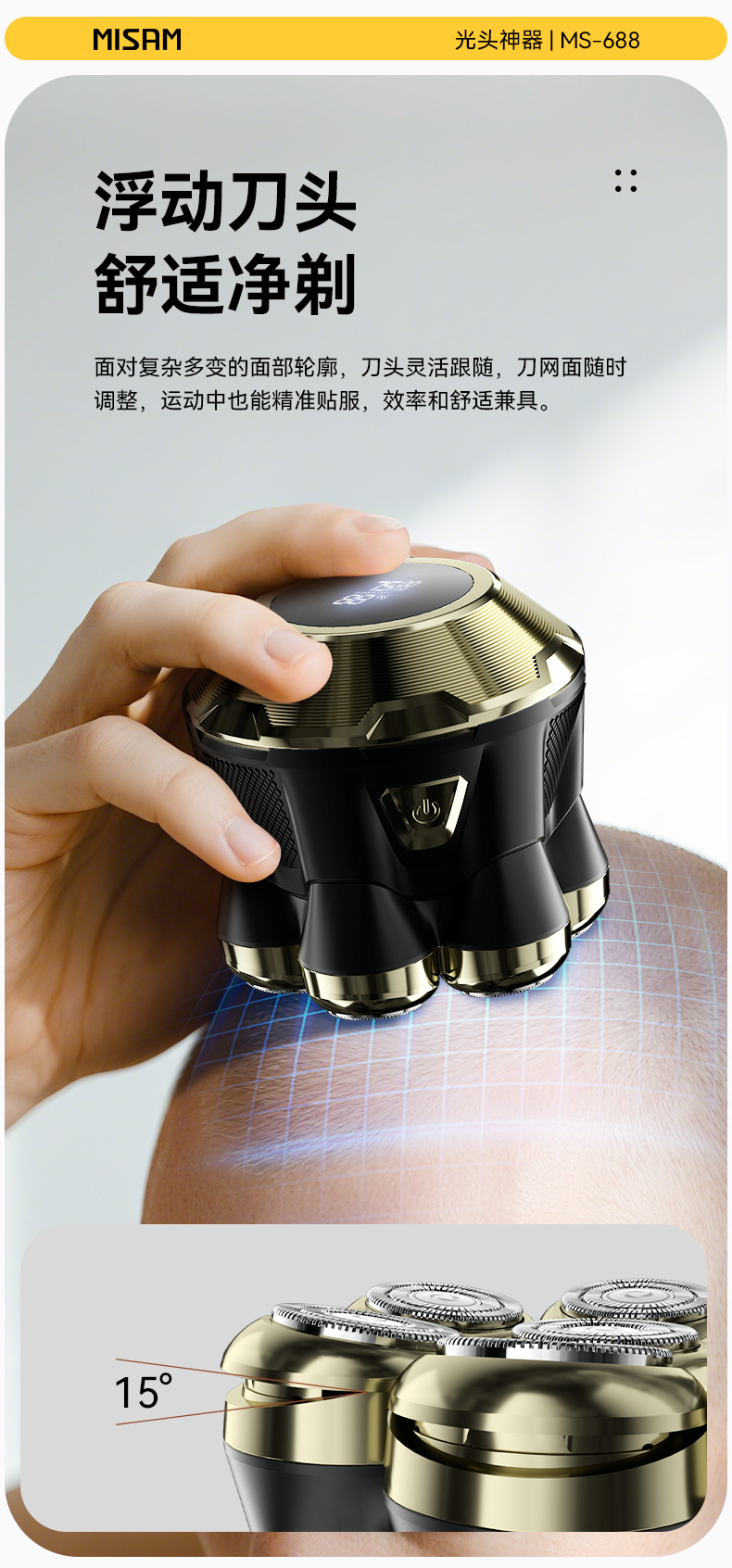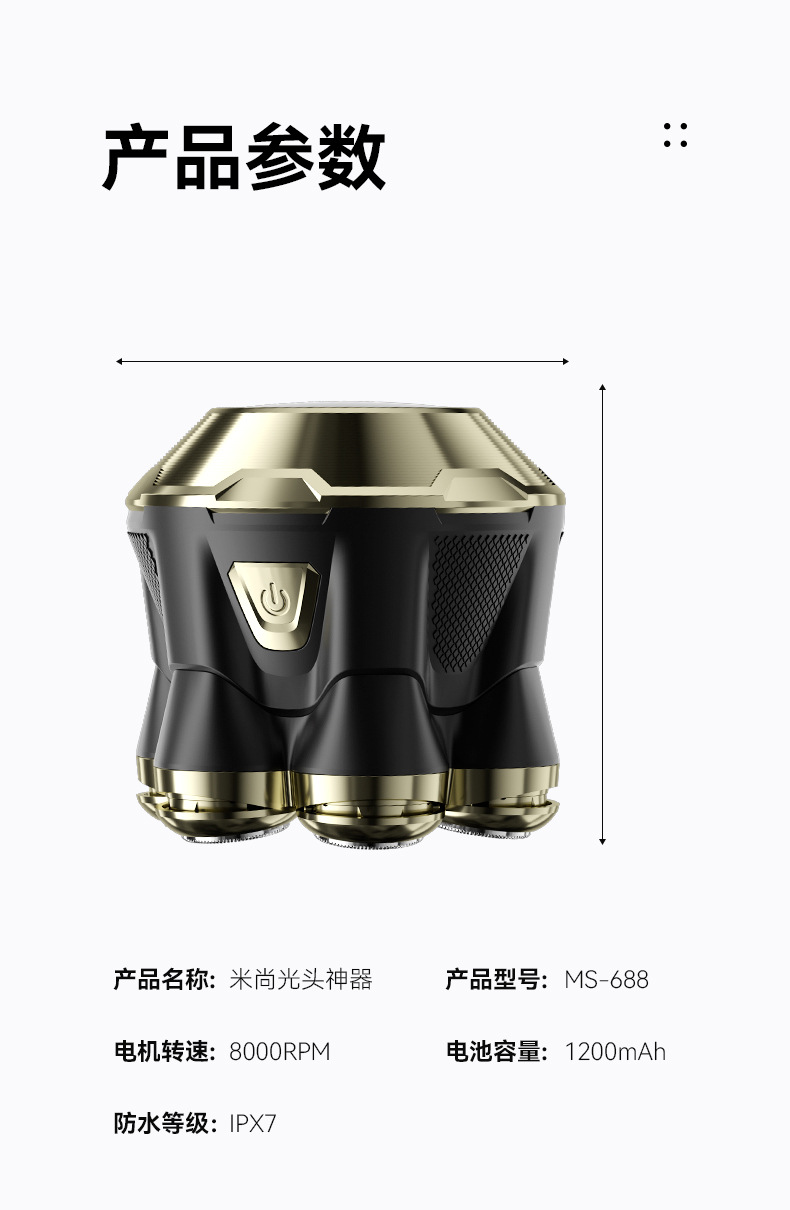 跨境10W高功率光头神器全身水洗剃光头自用理发器电动剃须刀光头