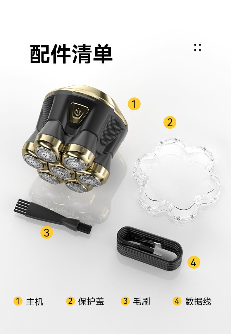 電気シェーバー 7 ヘッドメンズ充電式洗える電気ハゲバリカンクロスボーダーハゲアーティファクトシェーバー
