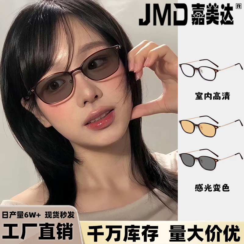 高级感变色眼镜男女通用新个性潮流方框平光镜黑框素颜网红光学镜
