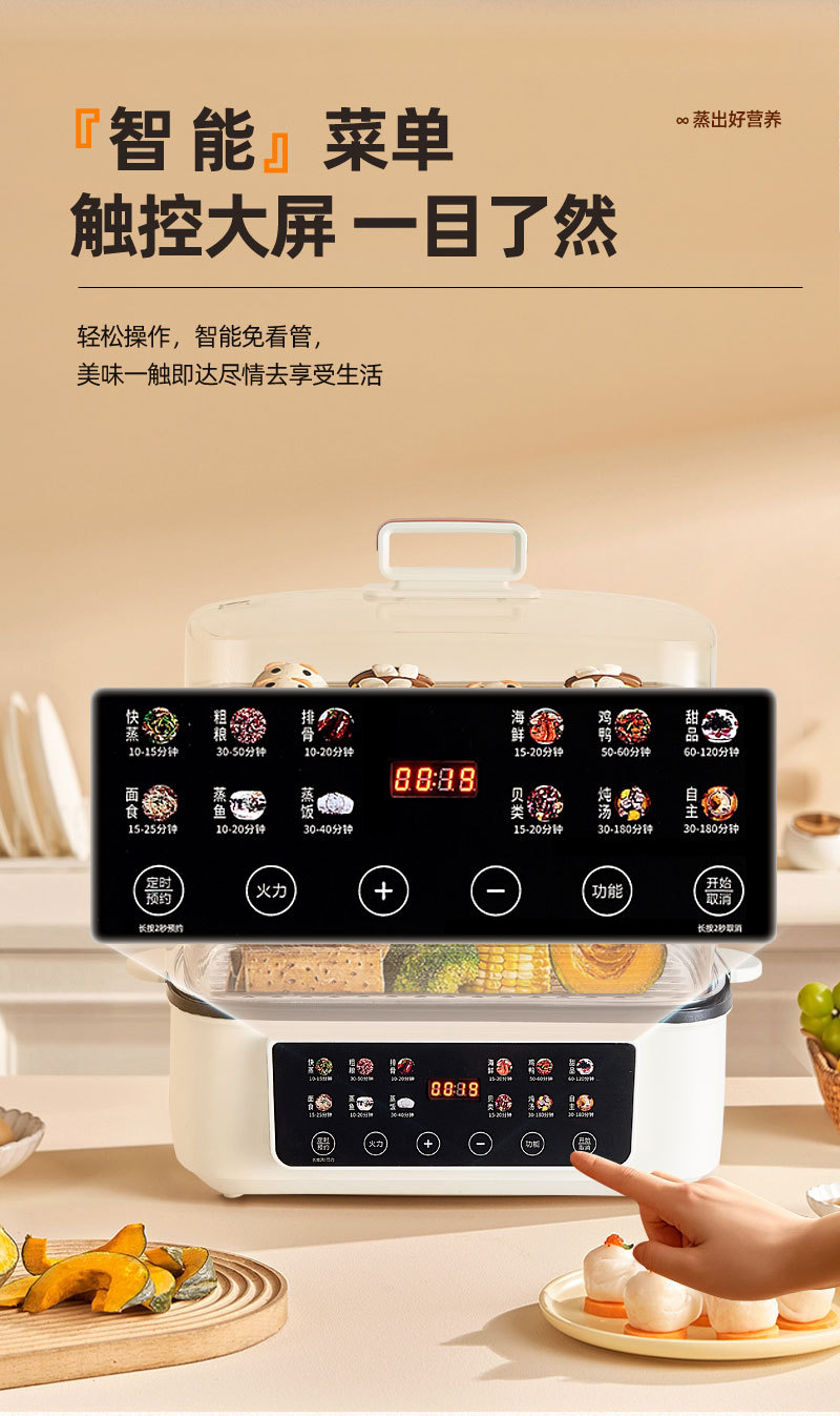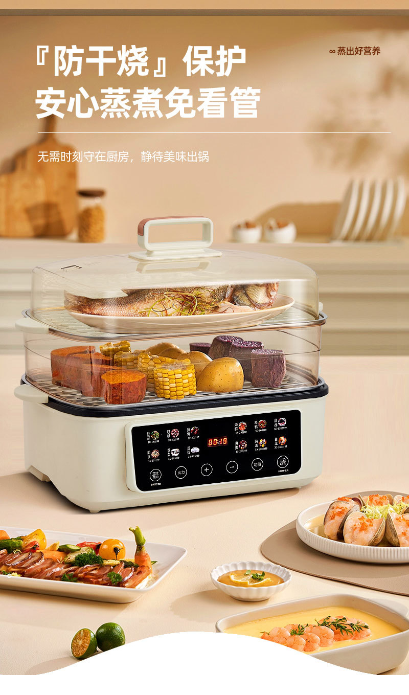 电蒸锅家用一体过功能自动断电早餐机智能三层多层可视蒸格大容量