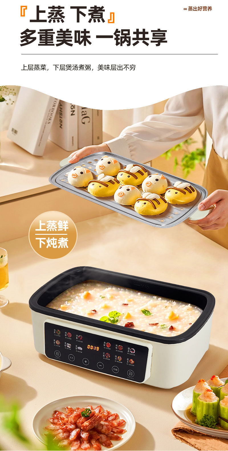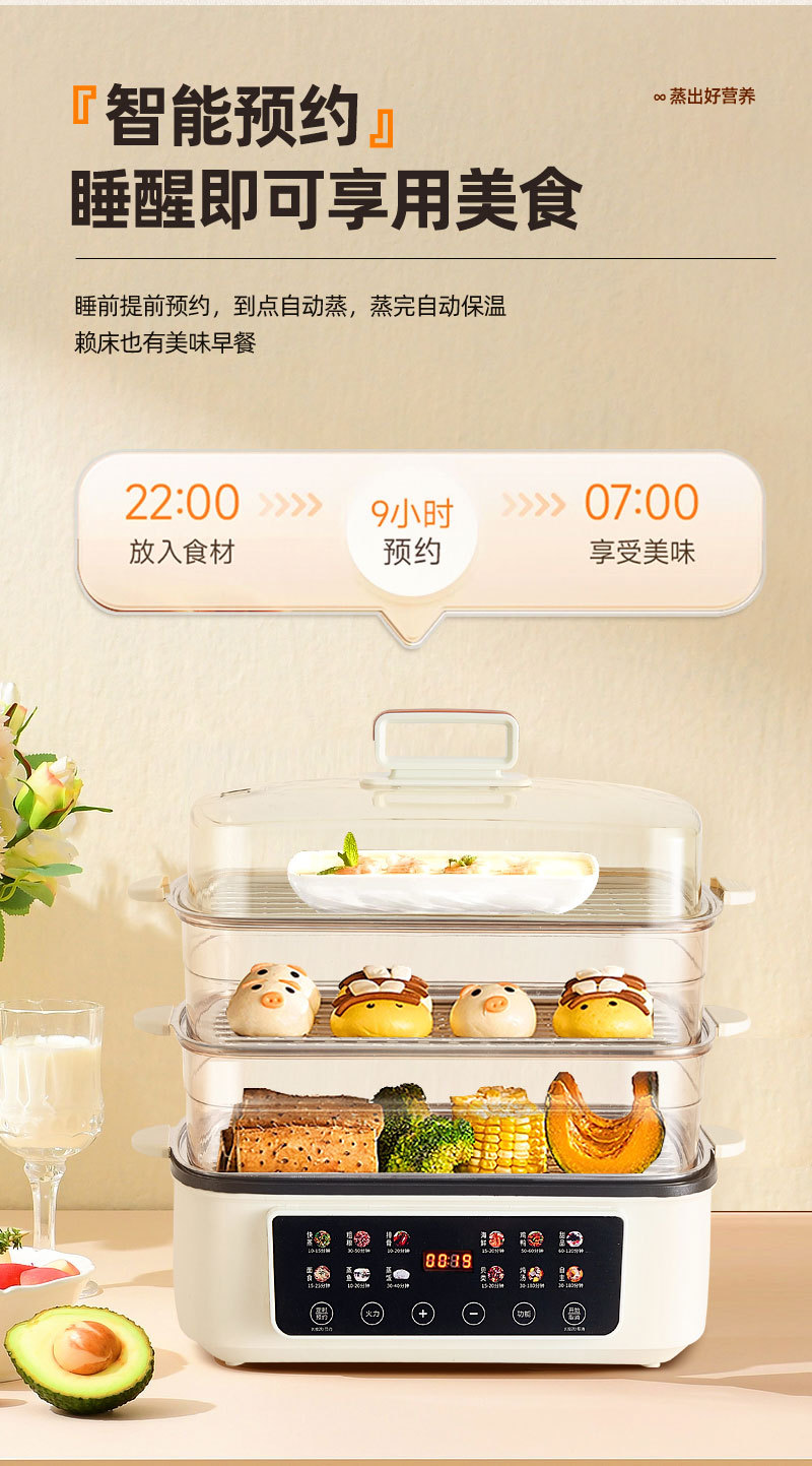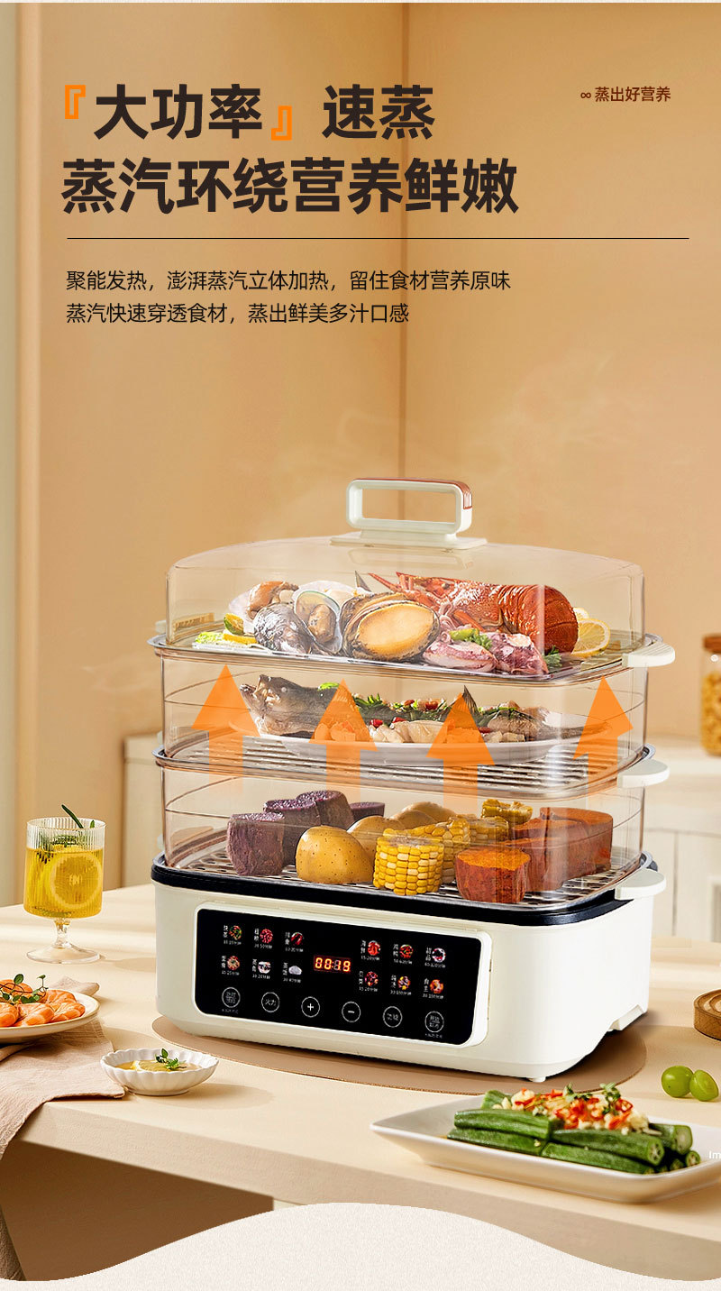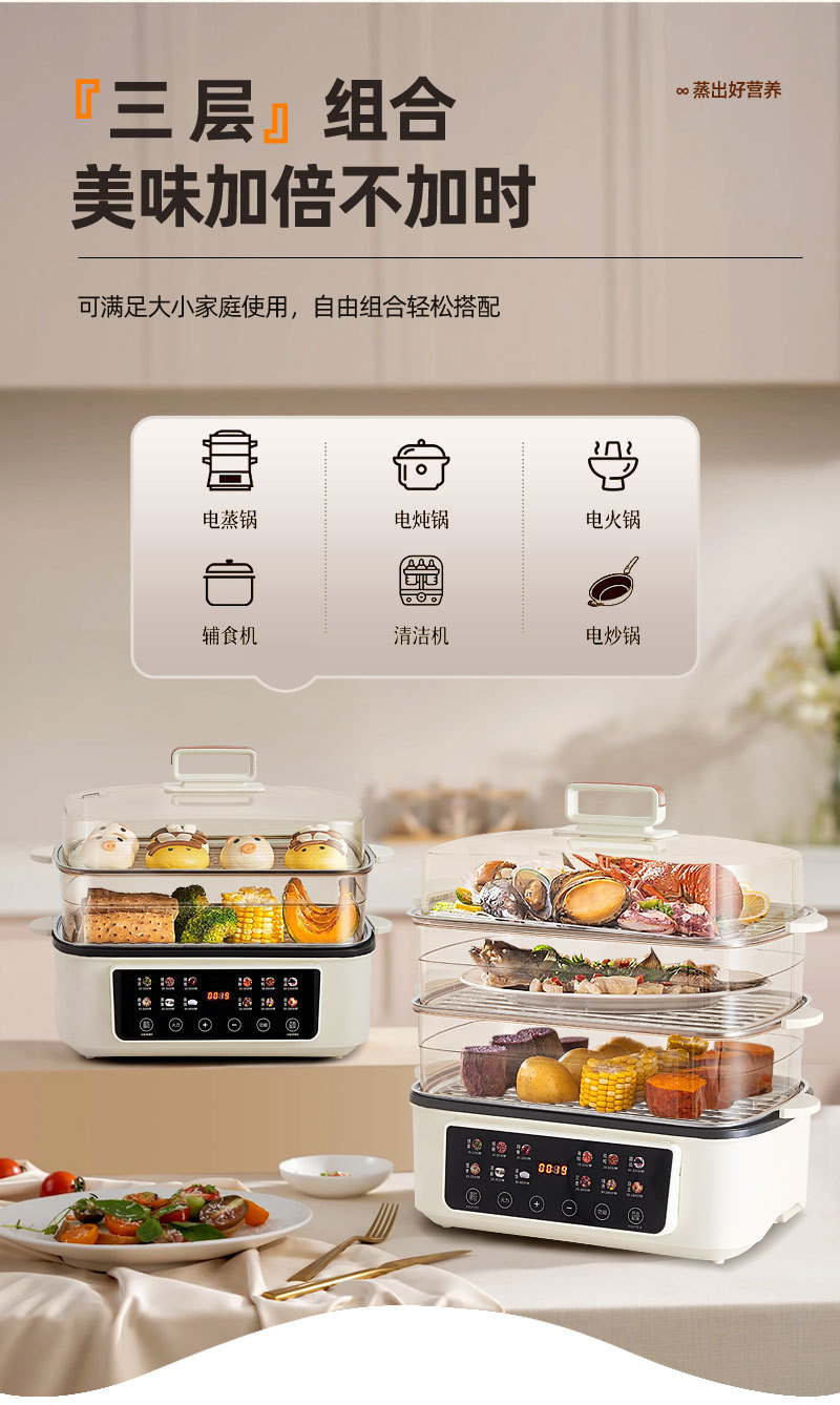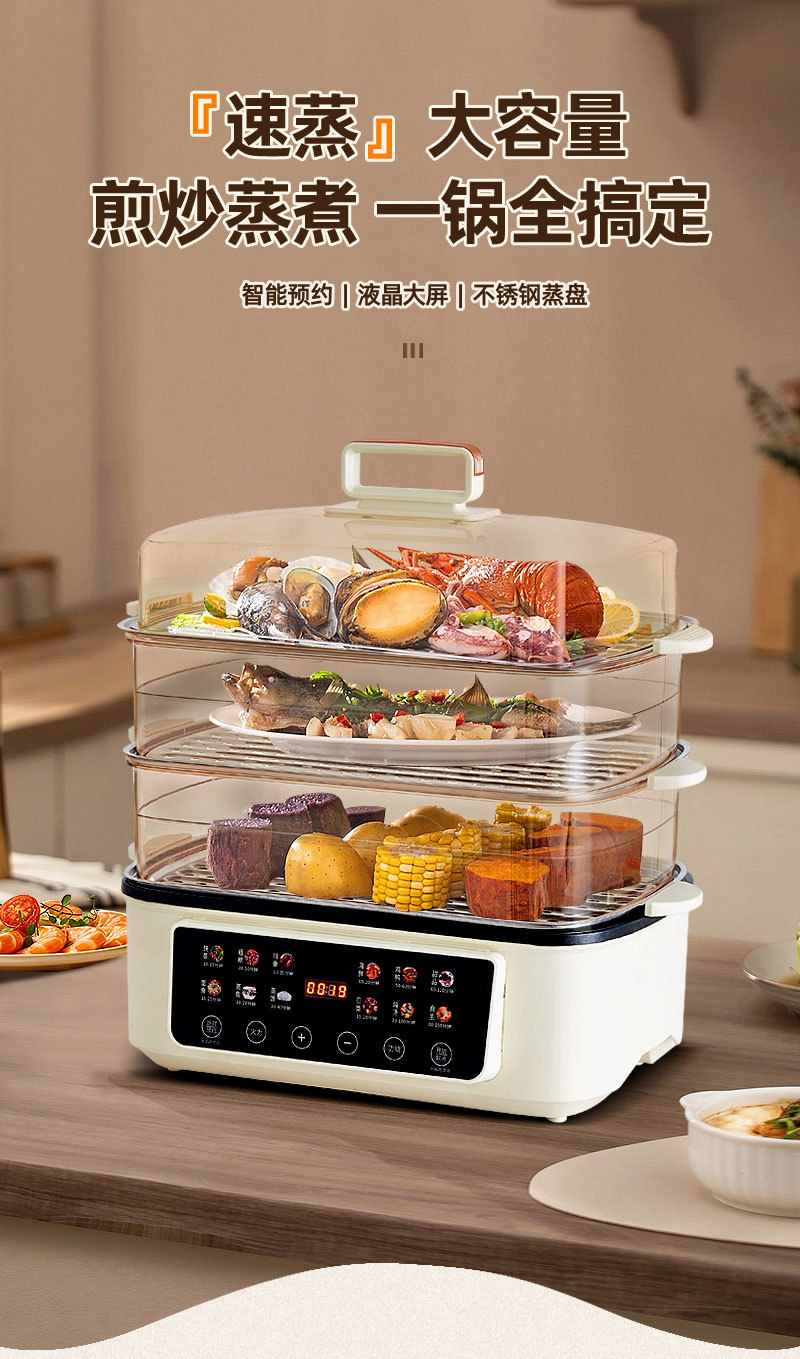 新款电蒸锅家用三层大容量多功能预约定时蒸煮一体早餐机电火锅批