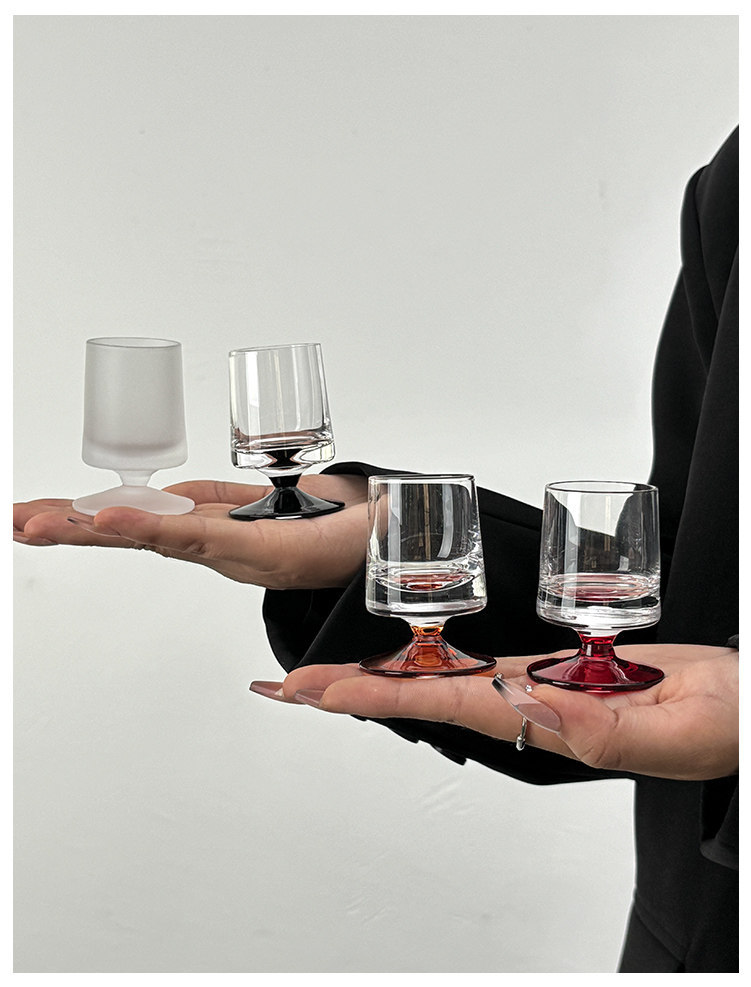 ins小众玻璃带脚小白酒杯简约烈酒杯分酒杯家用迷你一口杯小酒杯