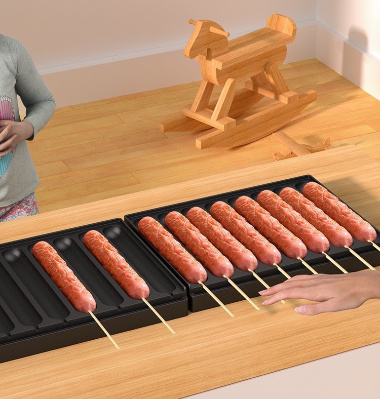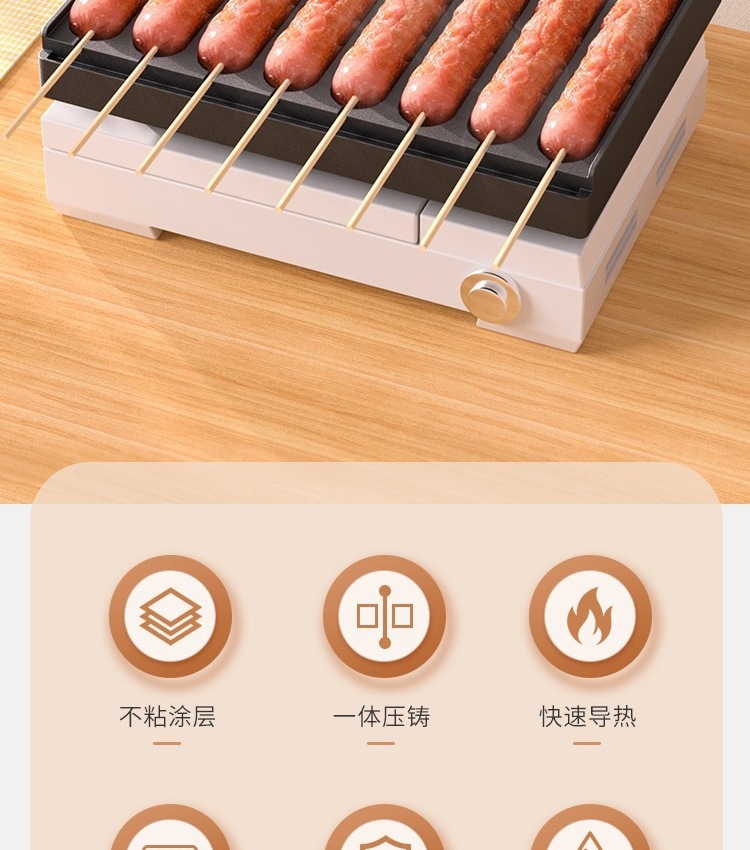 ソーセージ焼き機、屋台、業務用澱粉ソーセージ焼き機一式、夜市屋台、カセットコンロ、ソーセージ焼きトレイ、小型鉄板型