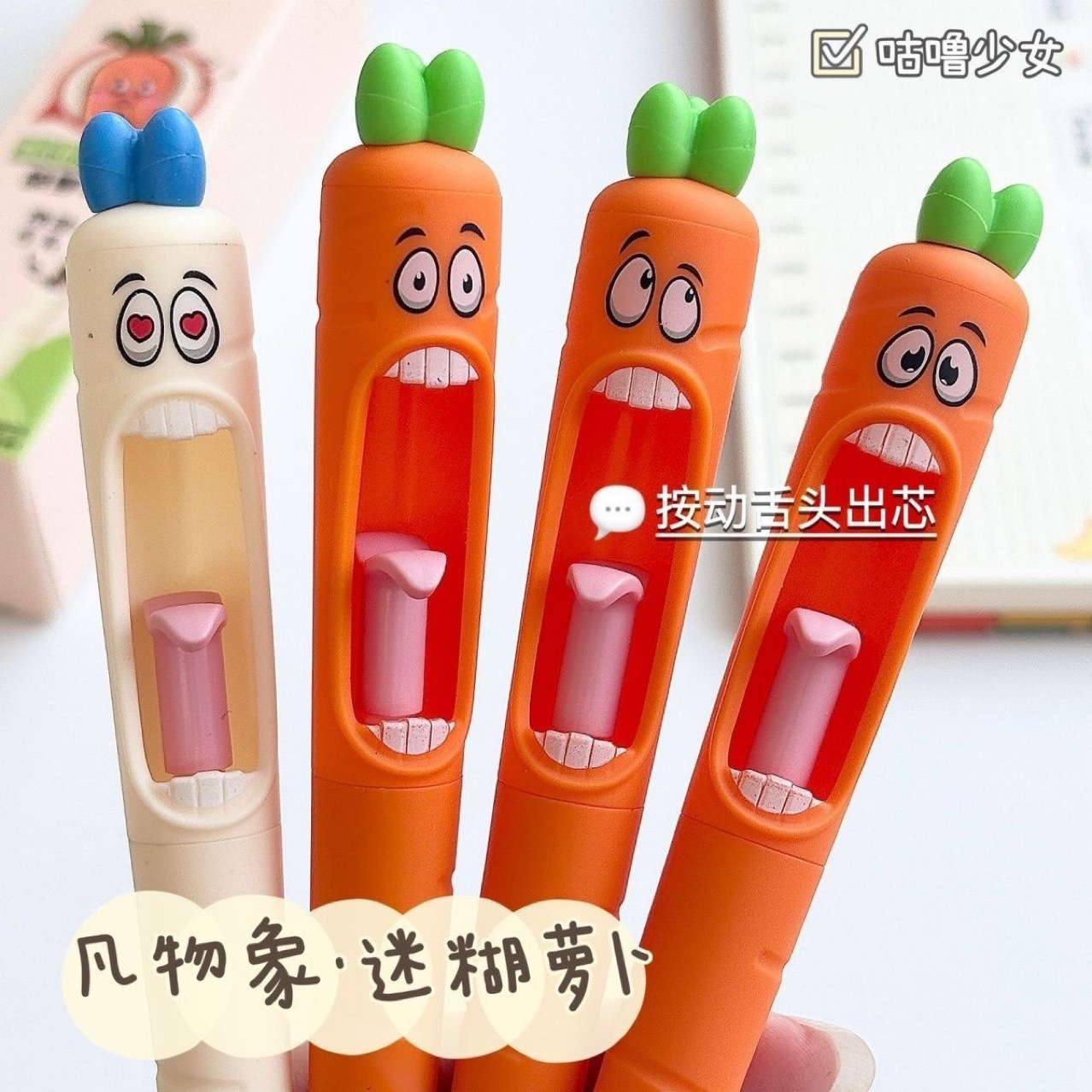 すべてのものはぼんやりしているようです。大根は中性ペンを押して面白いニンジンの形をします。