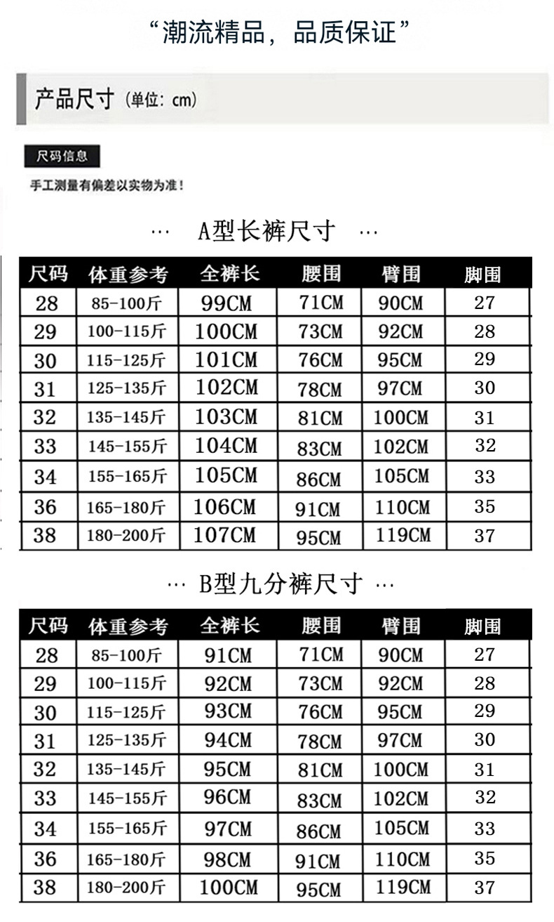 尺码 28(二尺一腰围),29(二尺二腰围),30(二尺三腰围),31(二尺四腰围),32(二尺五腰围),33(二尺六腰围),34(二尺七腰围),36(二尺八腰围),38(二尺九腰围)