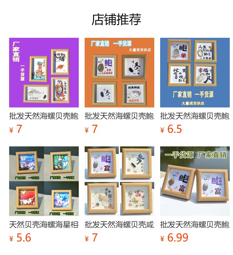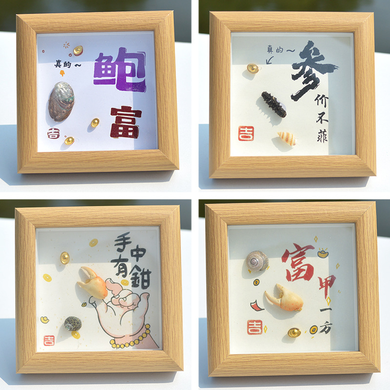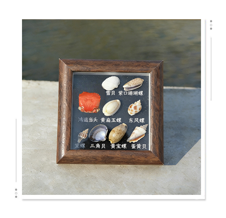 批发天然海螺贝壳咸鱼海参螃蟹标本相框摆件海边纪念品文创礼品