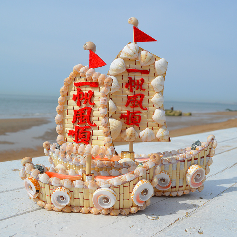 貝殻船、貝殻工芸品、家の装飾、地中海スタイル、海辺の装飾品、海洋、海の風船型の装飾