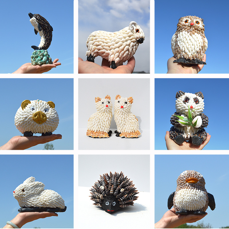 パンダ、金豚、ウサギの貯金箱、イルカ、ハリネズミ、猫、子羊、貝殻の置物、装飾貝殻工芸品