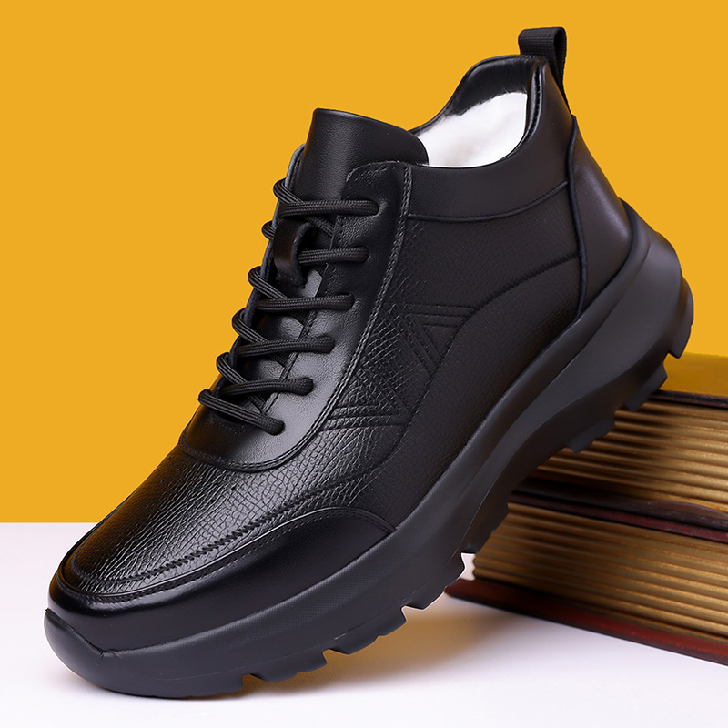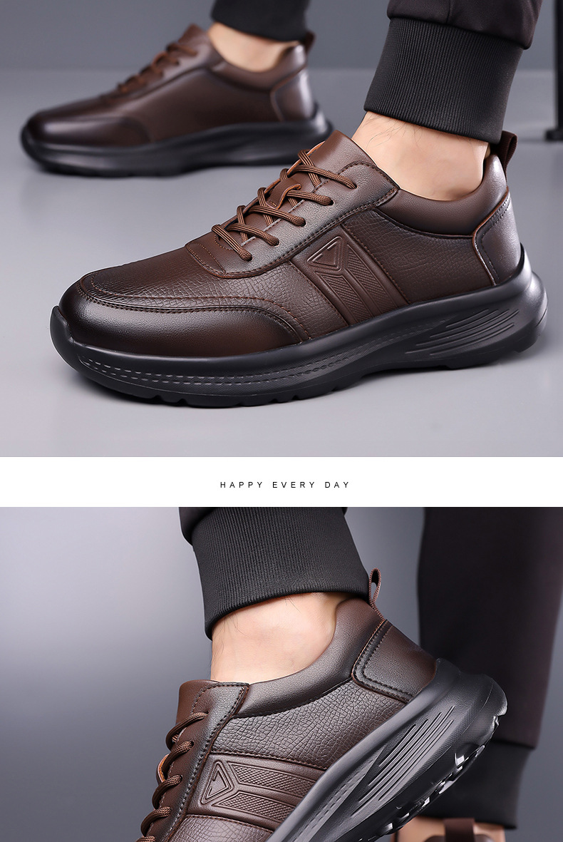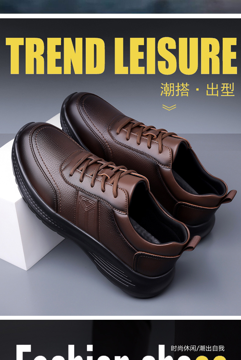 男士休闲皮鞋2025新款头层牛皮真皮时尚男鞋轻便中年爸爸保暖棉鞋