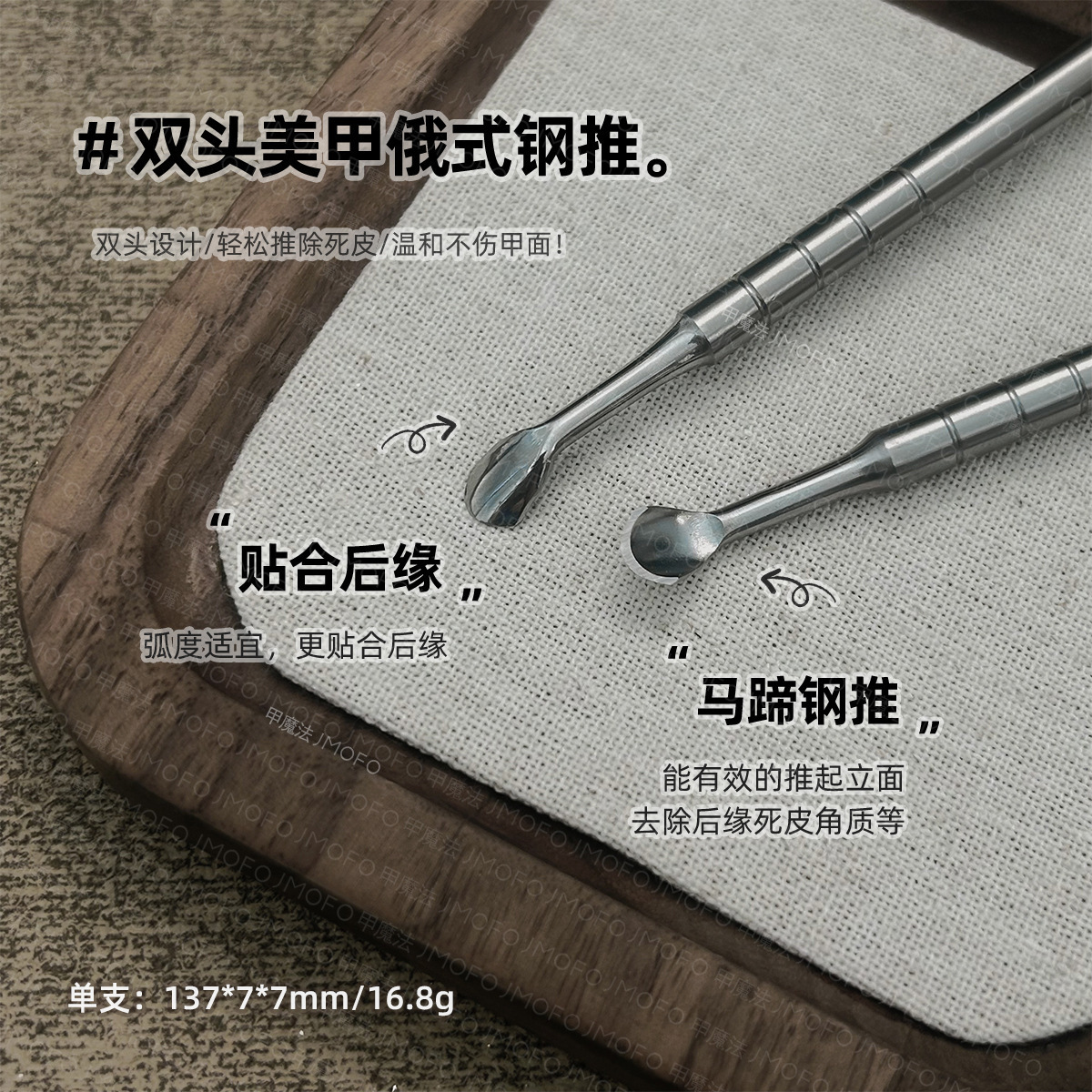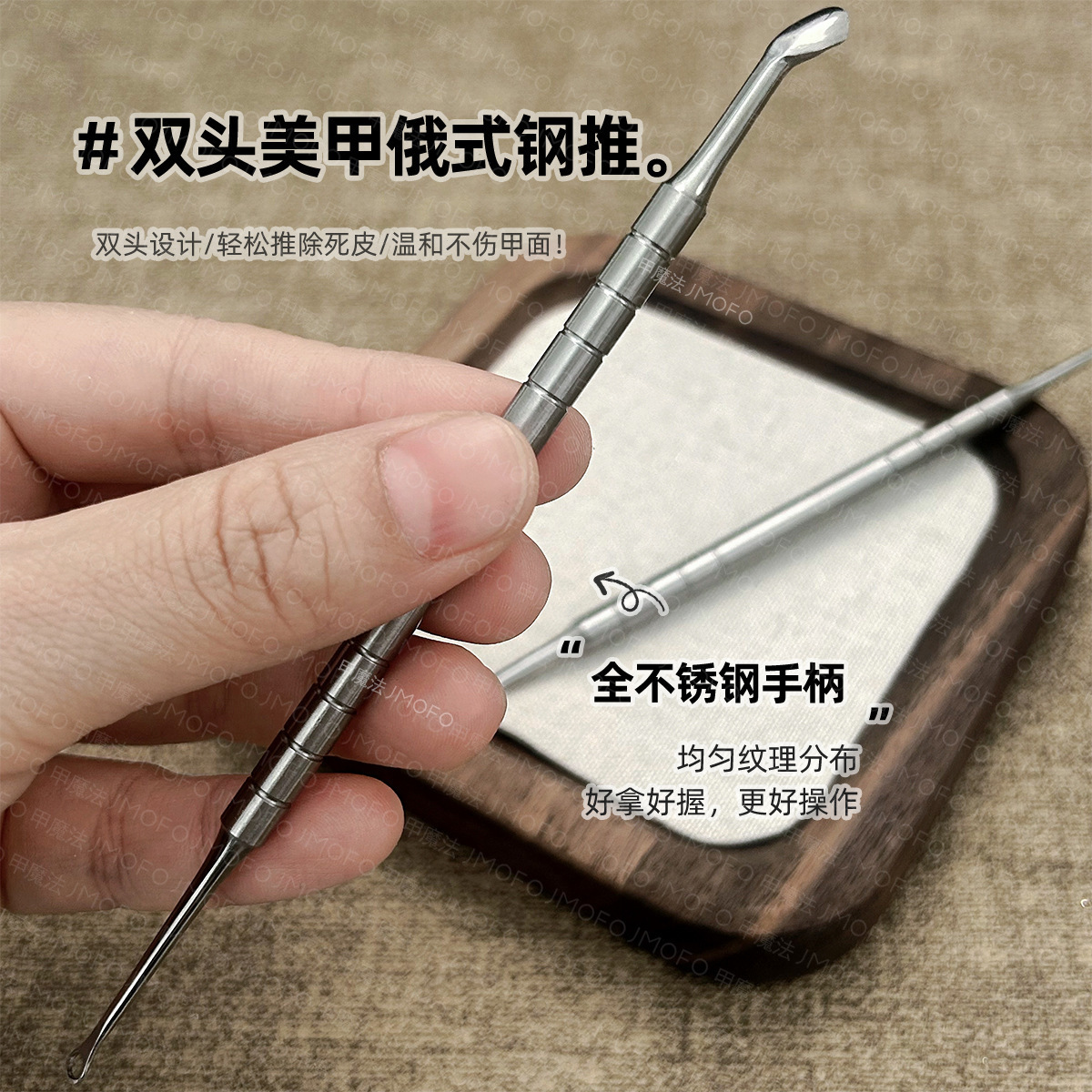 双头美甲钢推俄式前置处理推立面去死皮除角质不锈钢推子美甲工具