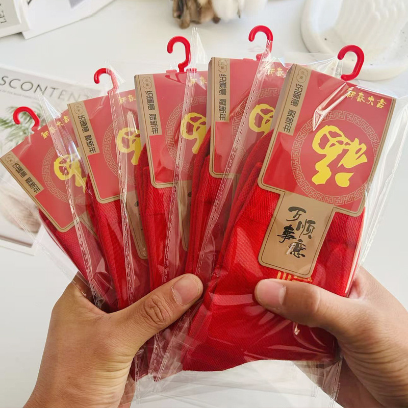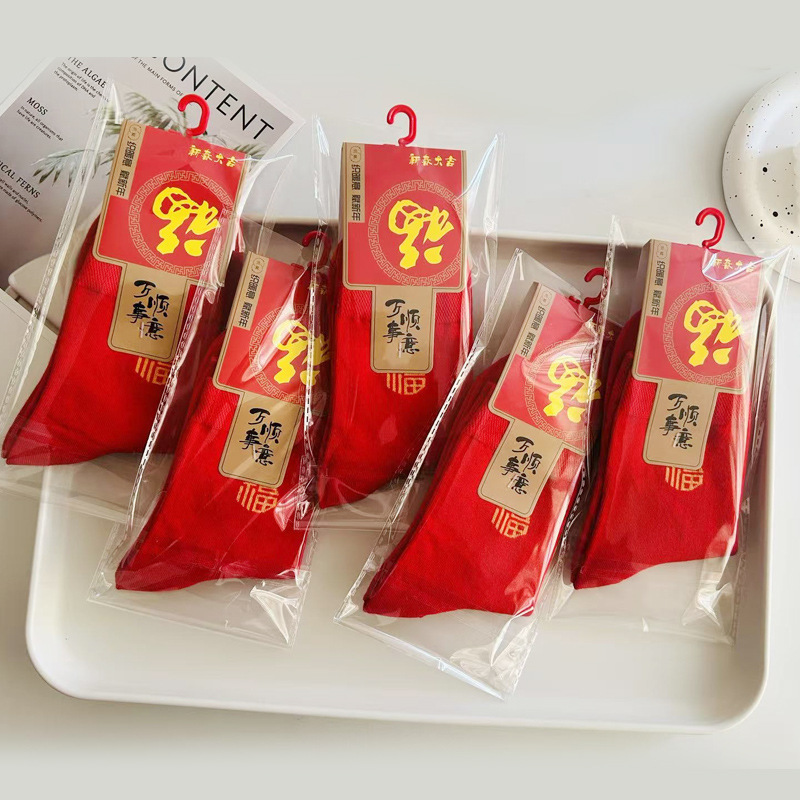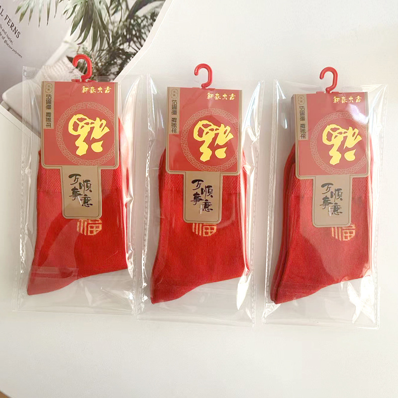 独立包秋冬款新年大红福字袜中筒本命年男女鸿运袜摆地摊袜子批发