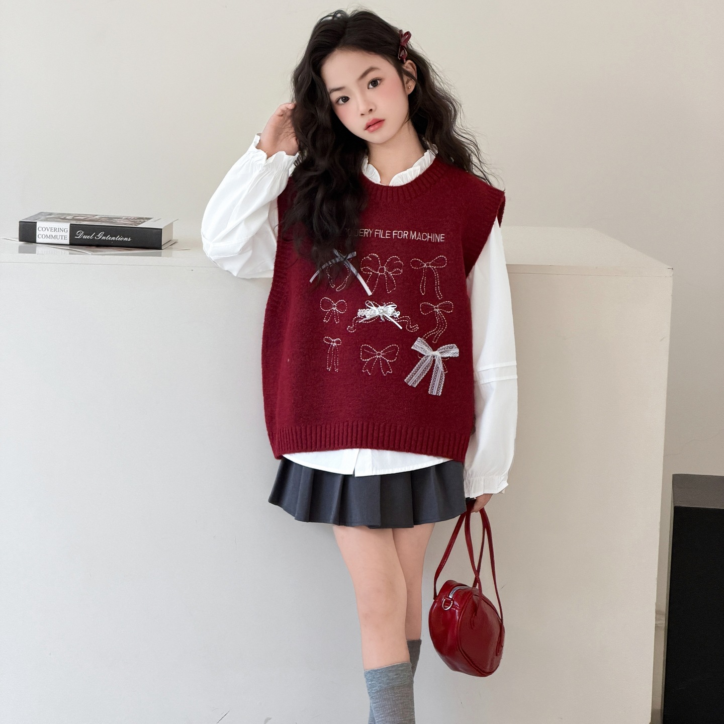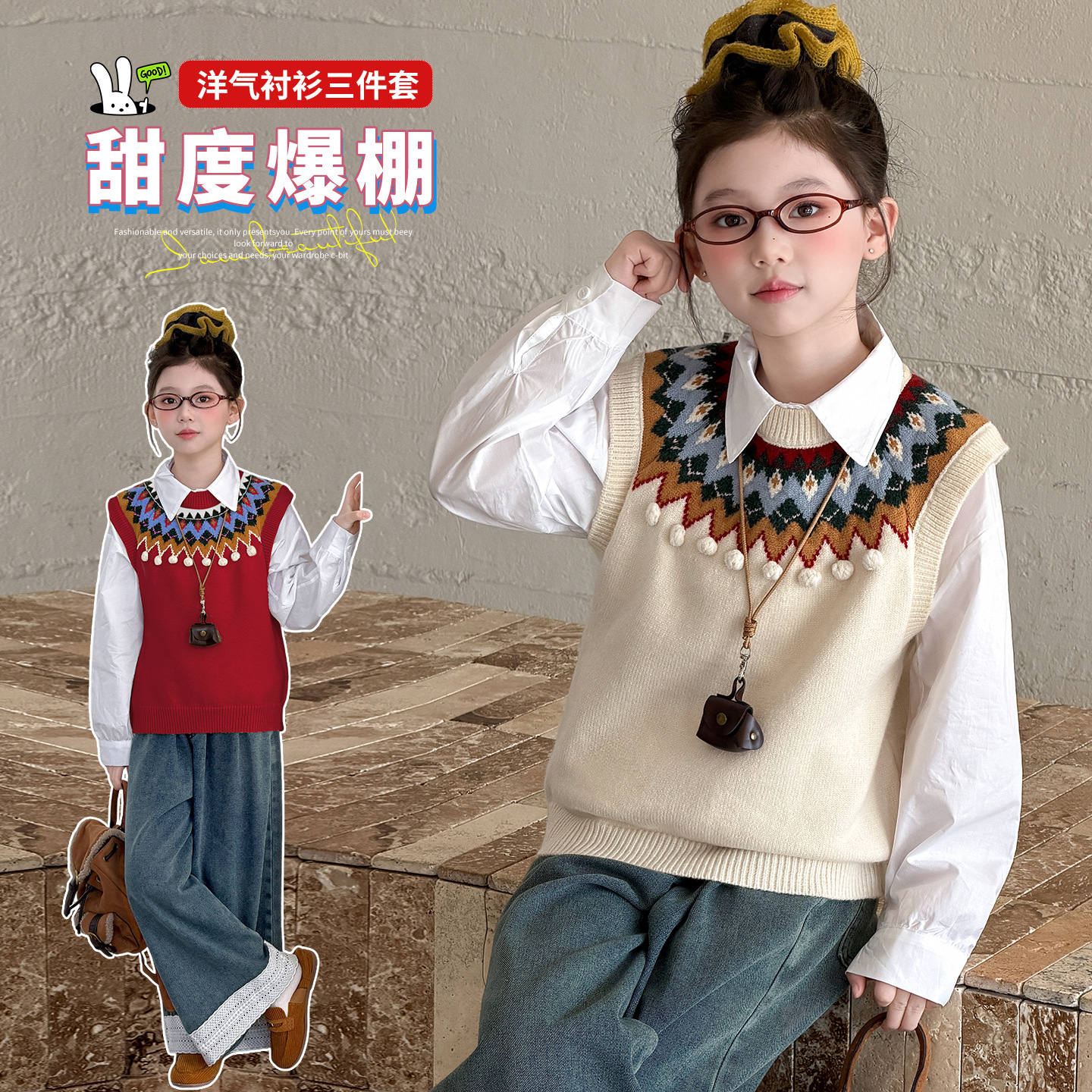 春季女童衬衫马甲套装春装新童装儿童女孩毛衣马甲两件套韩版洋气