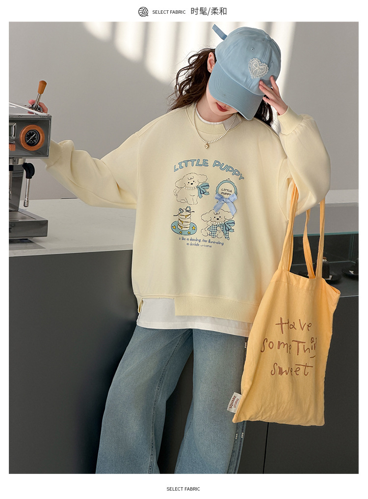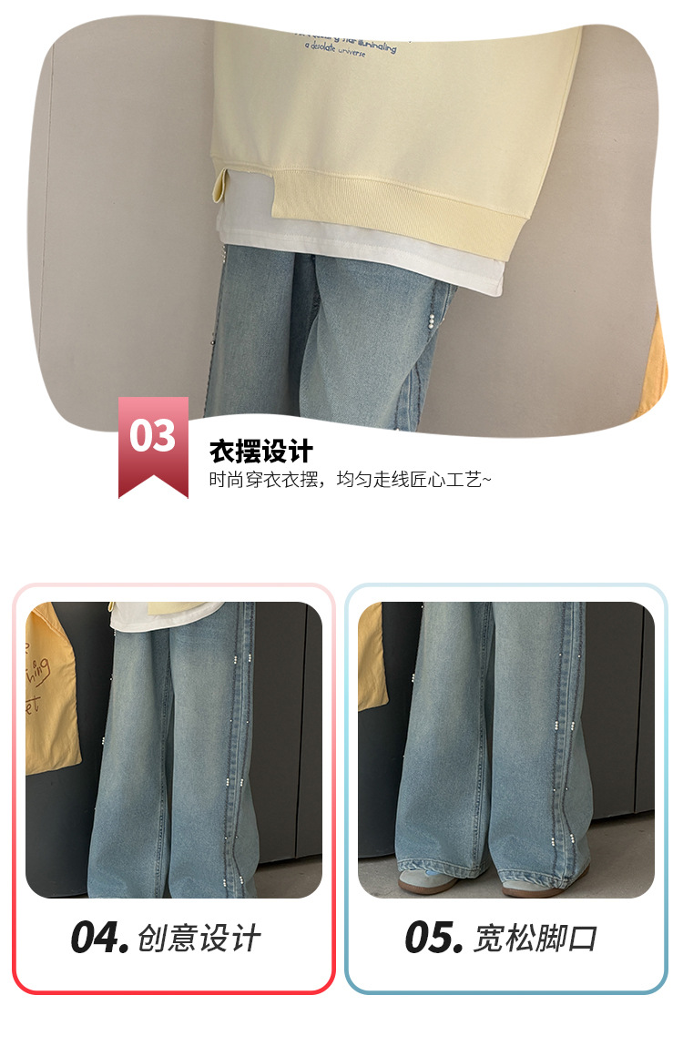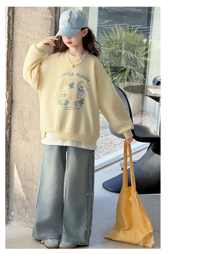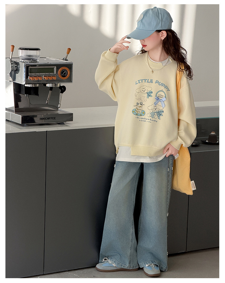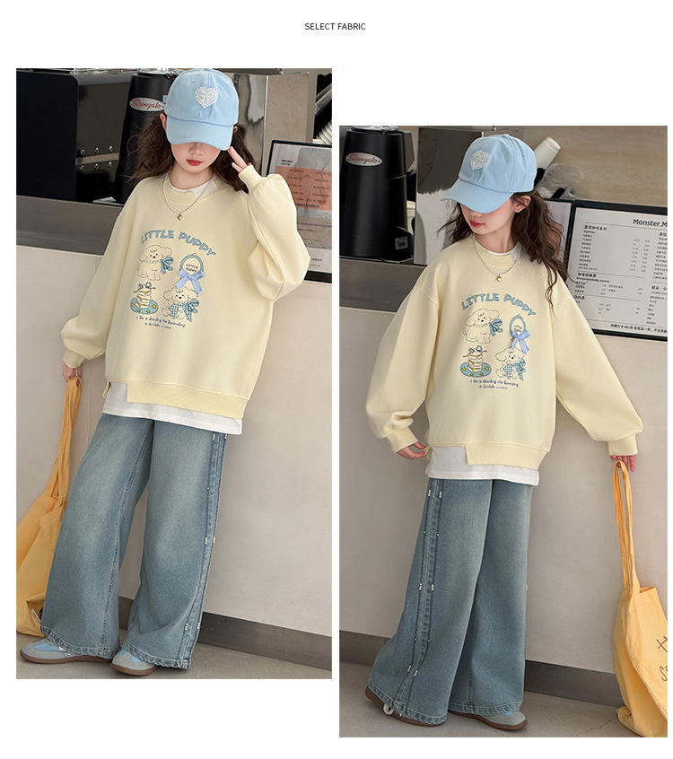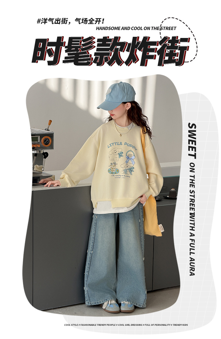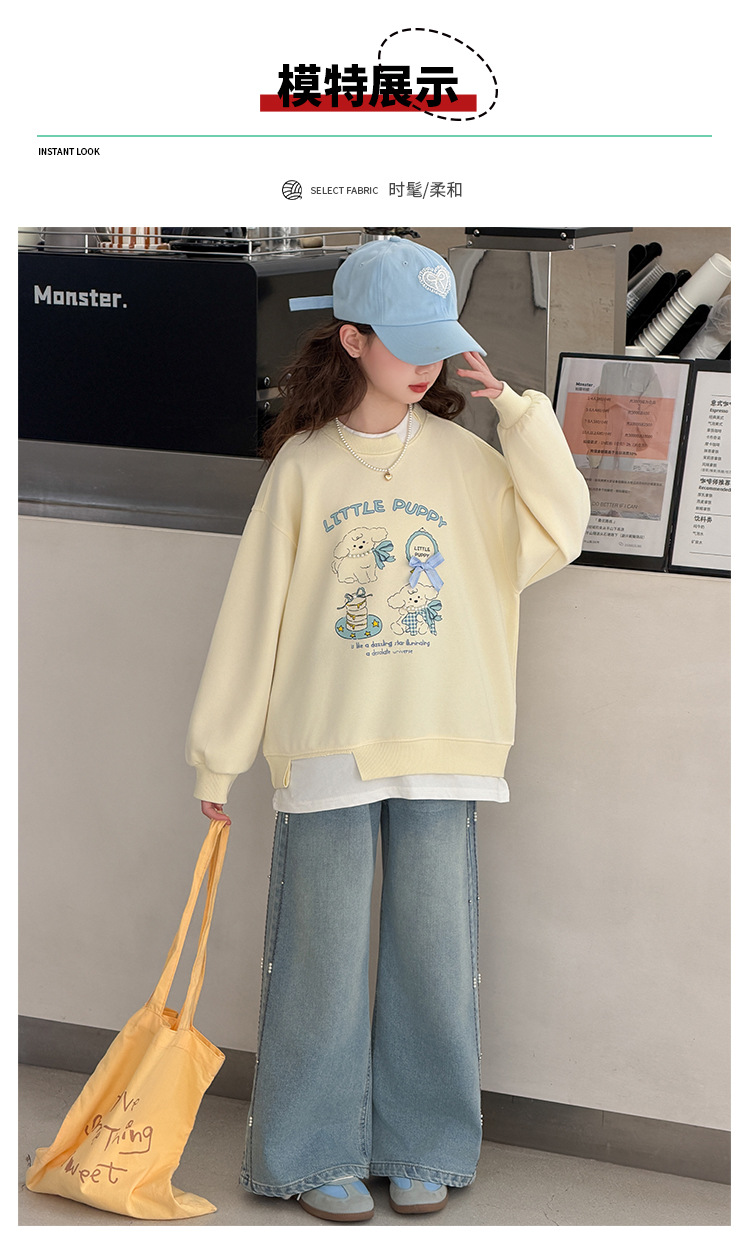 货号 F006款小狗假两件卫衣珍珠牛仔裤套装