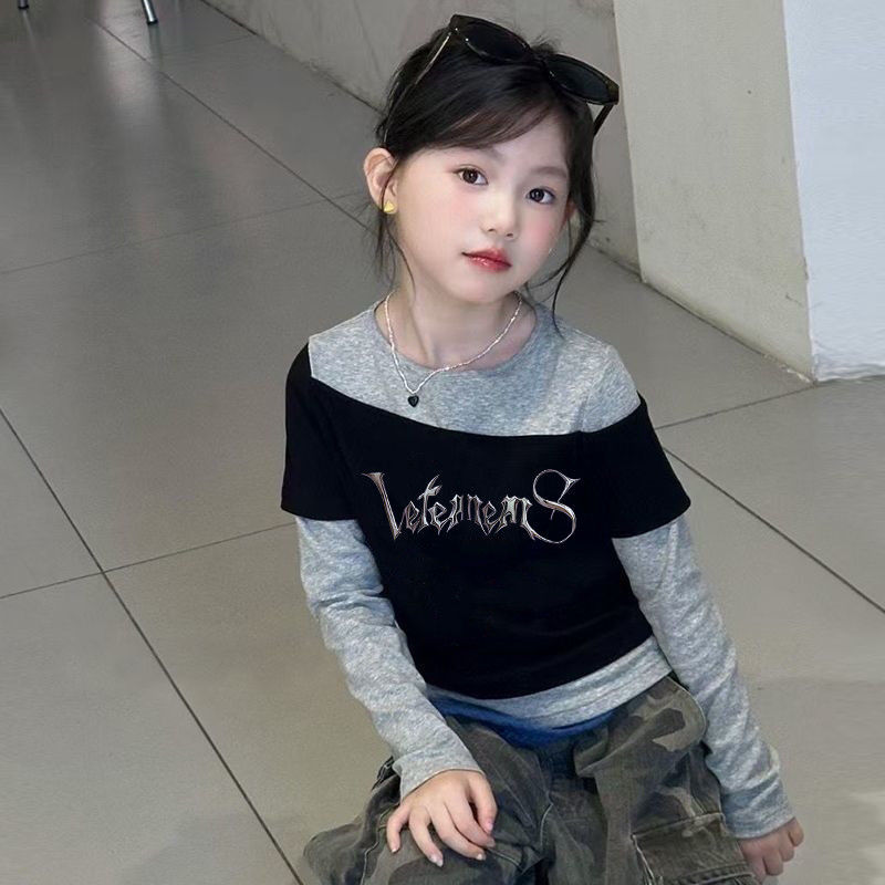 跨境女童两件套打底纯棉韩版新款洋气学生儿童字母休闲上衣长袖恤