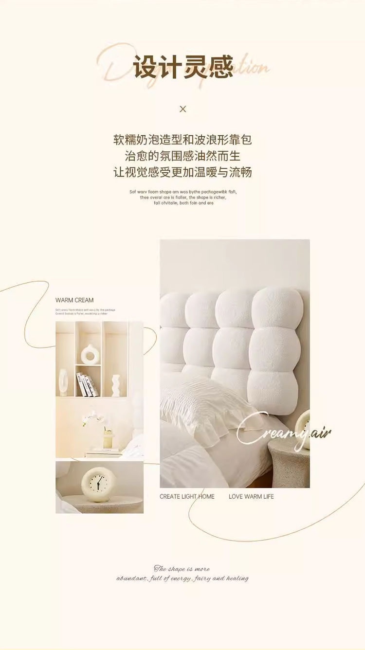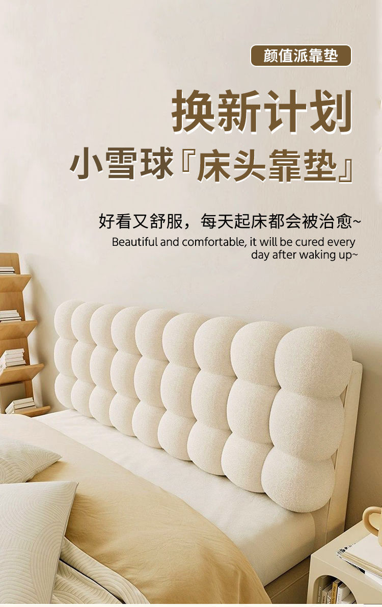 奶油床头靠垫榻榻米床上靠枕通用床头软靠垫加厚床头罩套护腰防撞