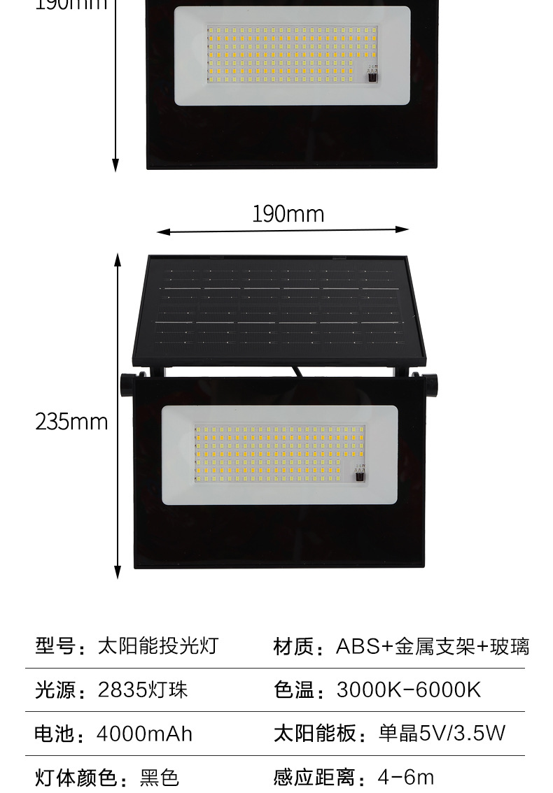太阳能投光灯折叠户外防水庭院灯投光灯高亮投射灯氛围照明泛光灯