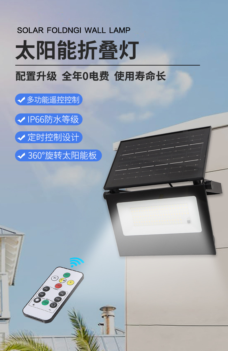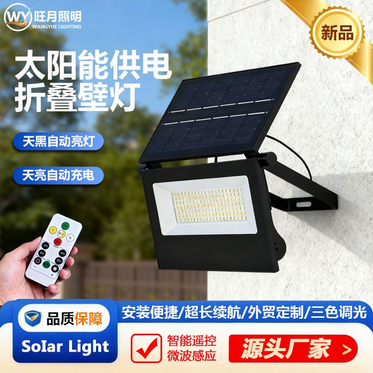 跨境太阳能灯遥控庭院壁灯户外照明花园led可折叠人体感应投光灯