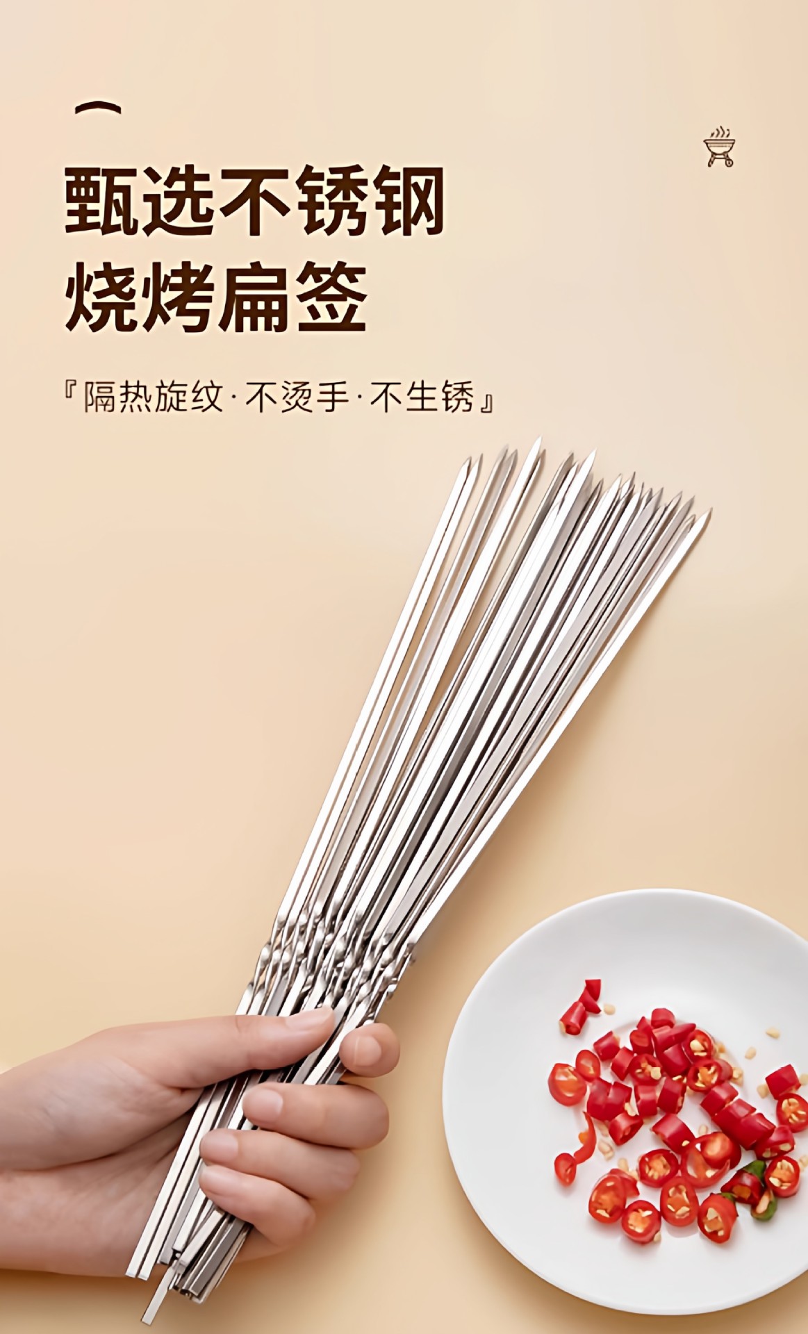 规格 不锈钢烧烤签长33CM【25根装】不烫手,不锈钢烧烤签长33CM【50根装】不烫手