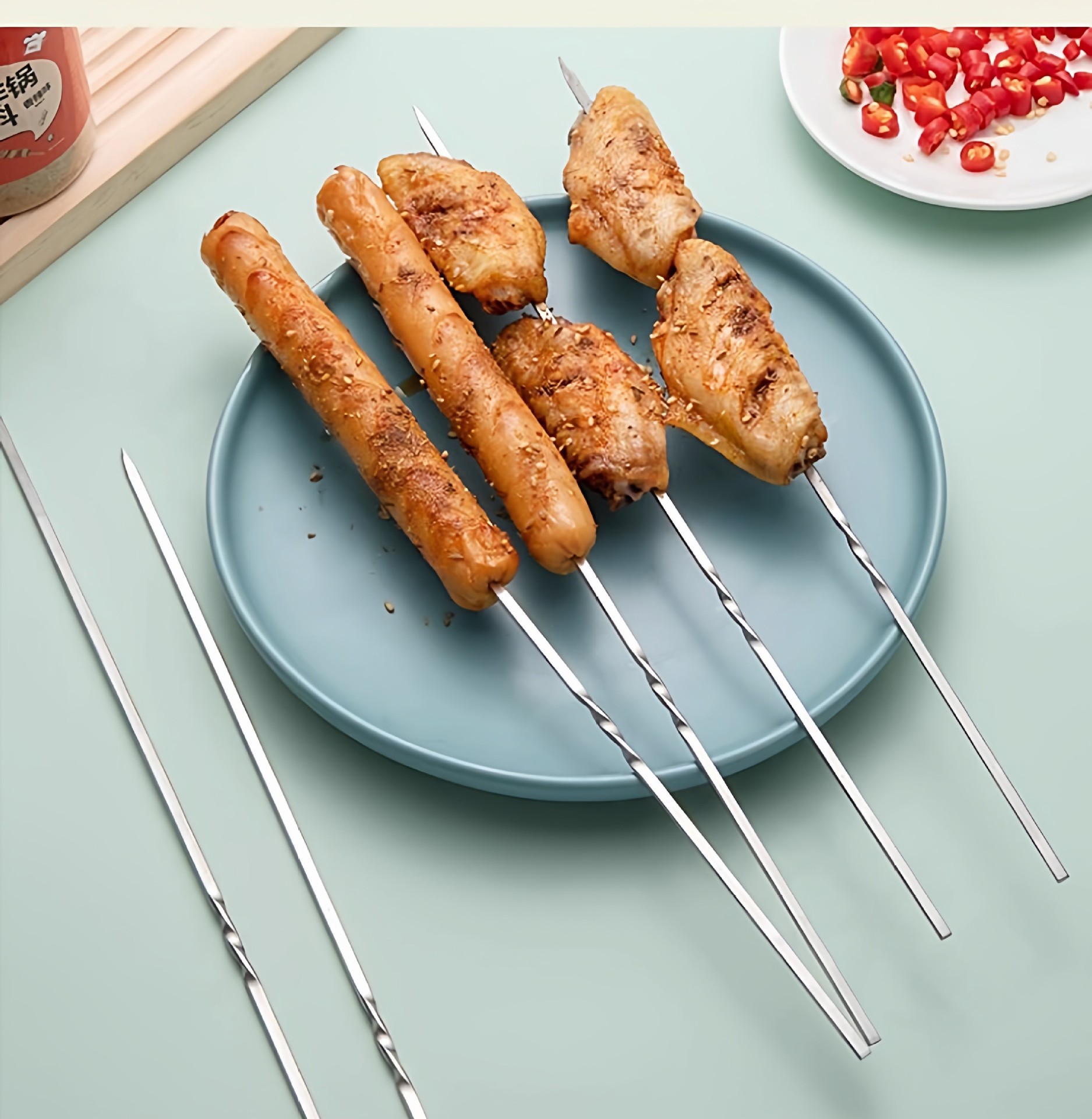 バーベキュースティック食品グレード 304 ステンレス鋼肥厚ラム串バーベキュー鋼スティック鉄スティックフラットスティック針バーベキュー串