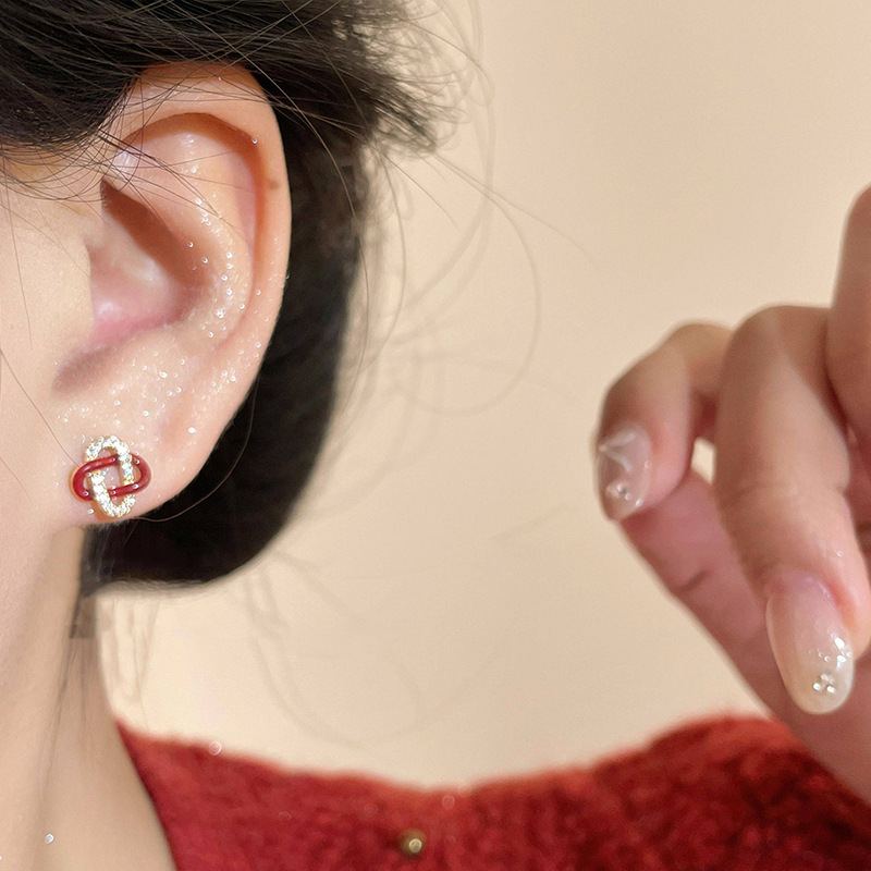 银针同心结新年红色耳钉女高级感轻奢马年本命年耳饰2026新款耳环
