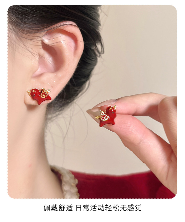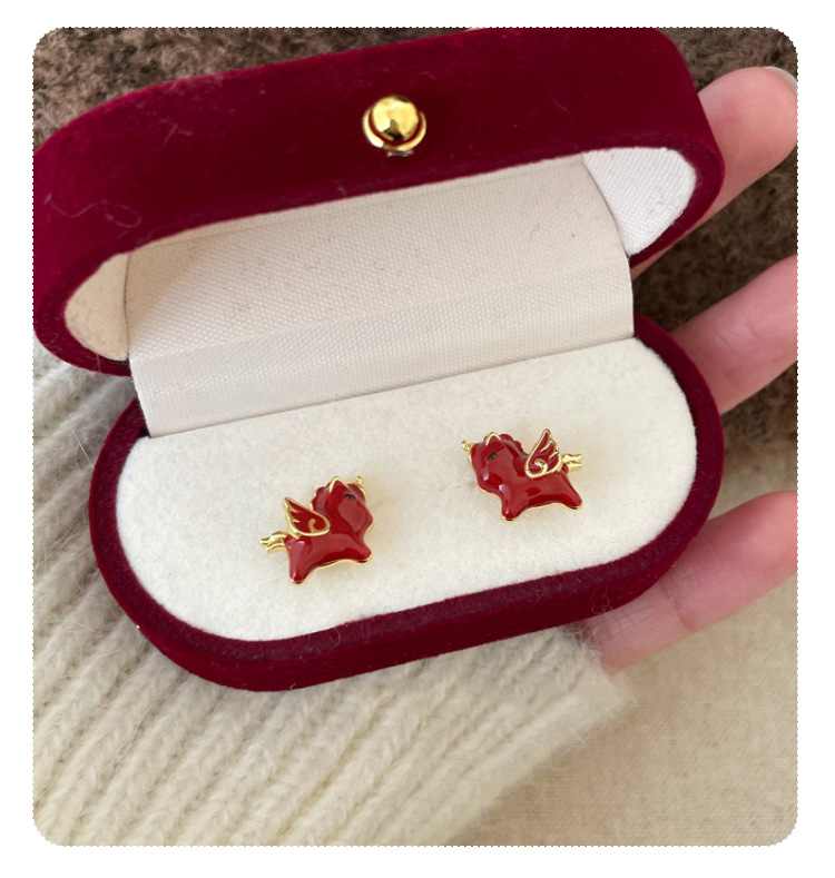 本命年红色小马耳钉女2026新款爆款高级感轻奢耳环巨好看百搭耳饰