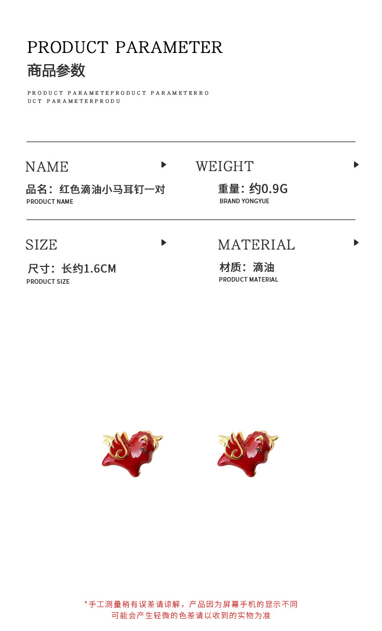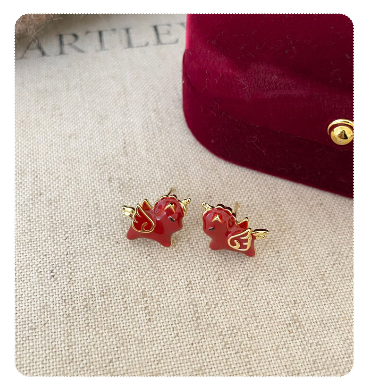 颜色 红色滴油小马耳钉一对