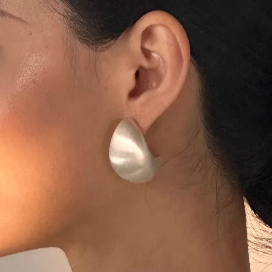 フレンチレトロシルバー誇張ワイドウォータードロップヘビー加工ブラッシュドイヤリングアーティスティックレトロニッチ感イヤリング女性用