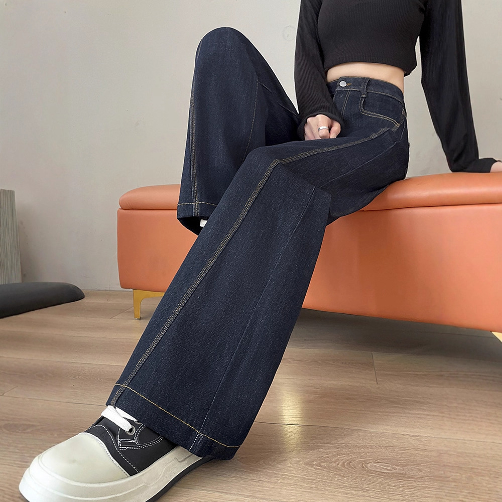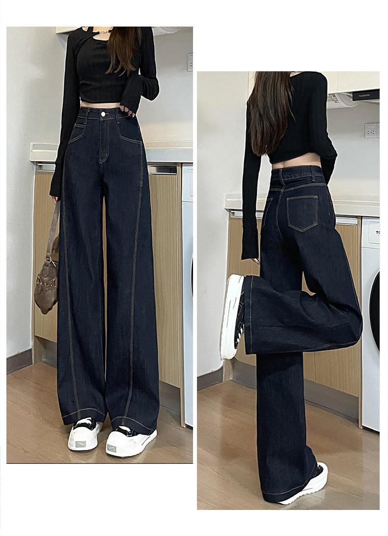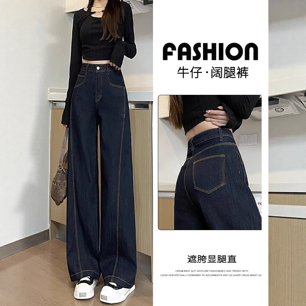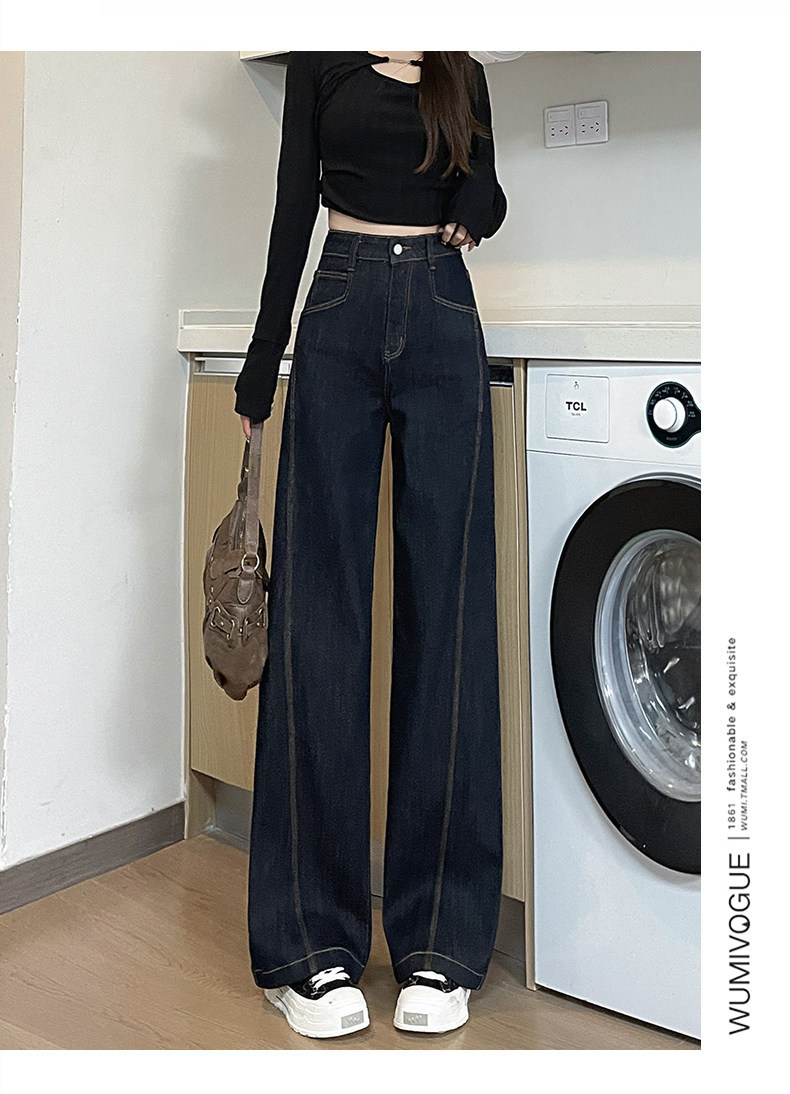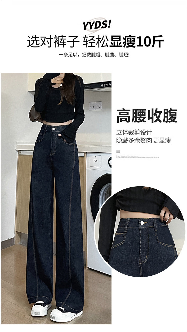 丹宁深蓝高腰阔腿牛仔裤女秋2025年新款复古慵懒松弛感直筒拖地裤